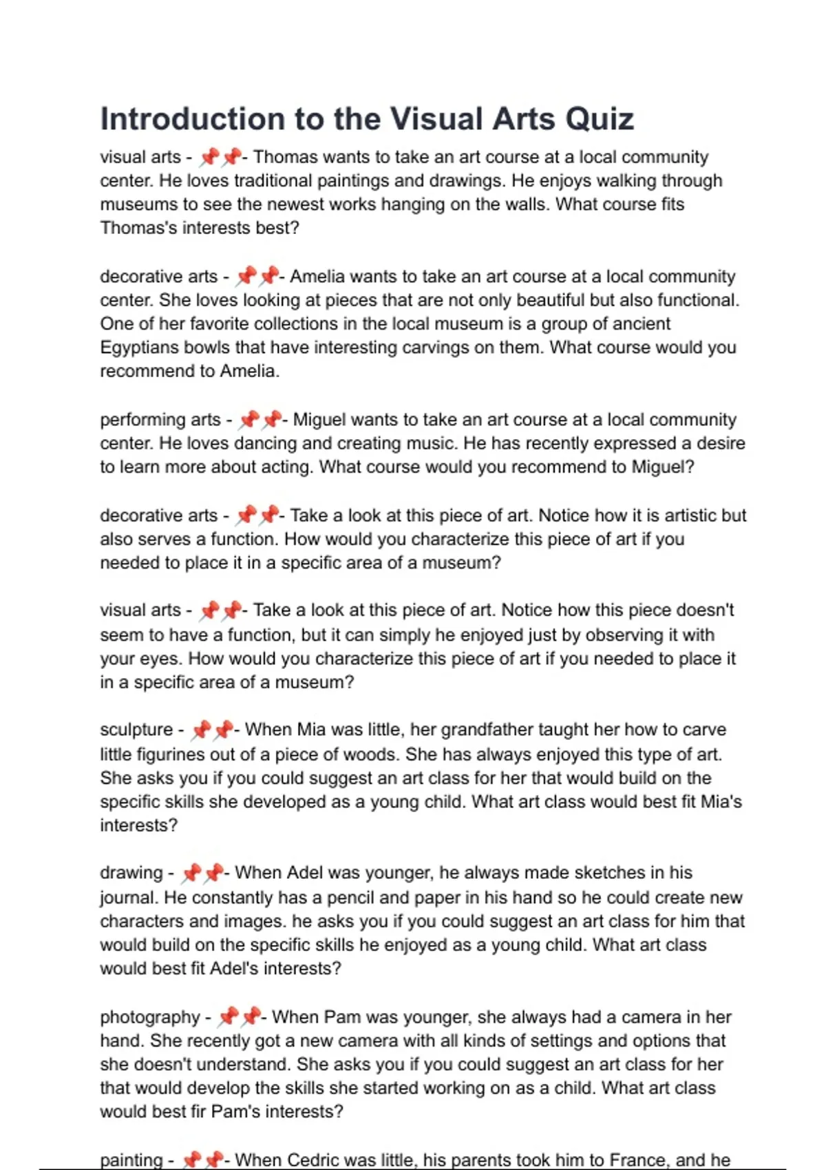visual arts - 📌📌 - Thomas wants to take an art course at a local community
