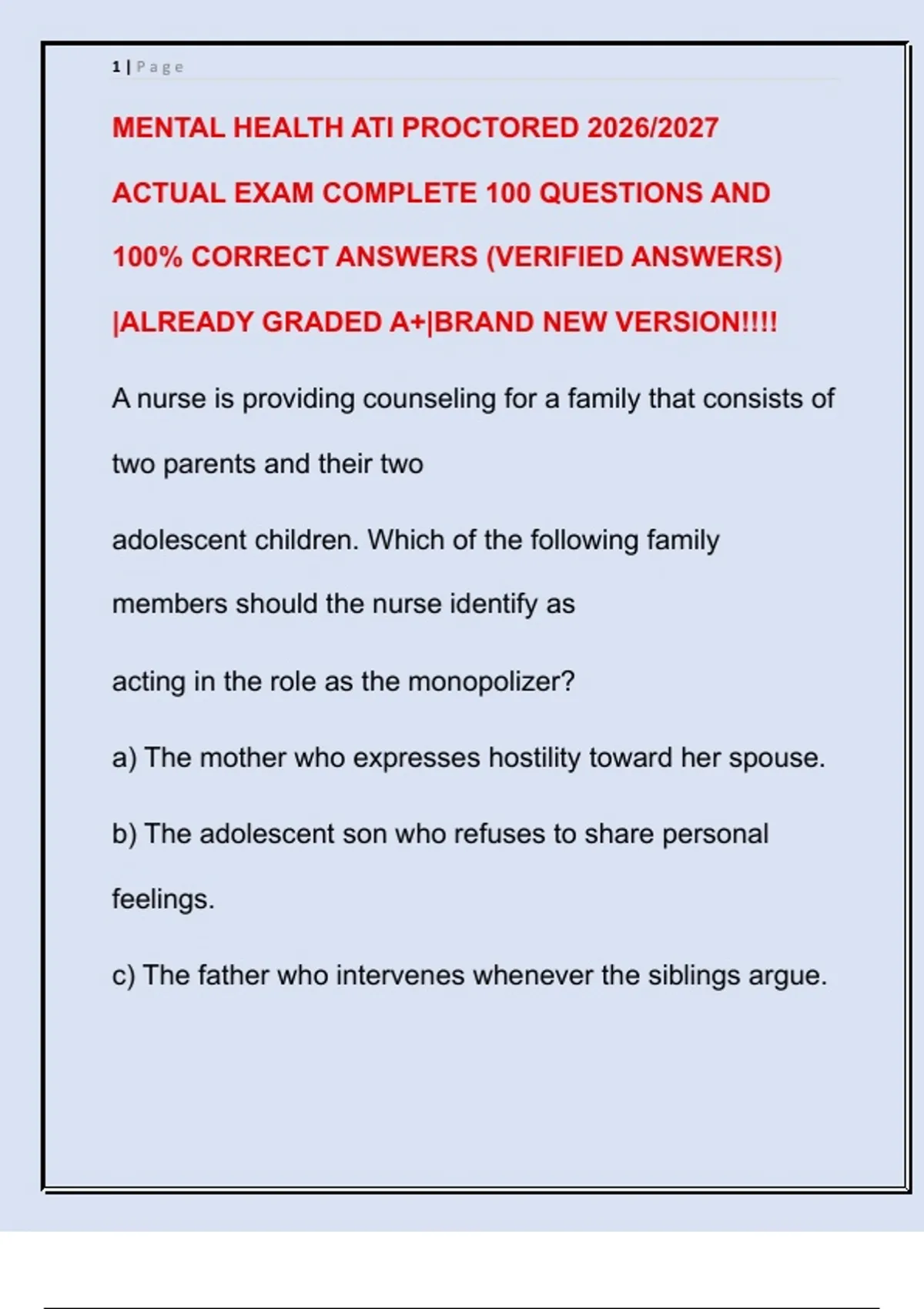 MENTAL HEALTH ATI PROCTORED 2026/2027