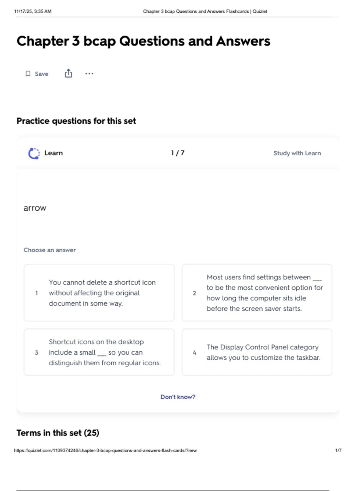 , 11/17/25, 3:35 AM Chapter 3 bcap Questions and Answers Flashcards | Quizlet