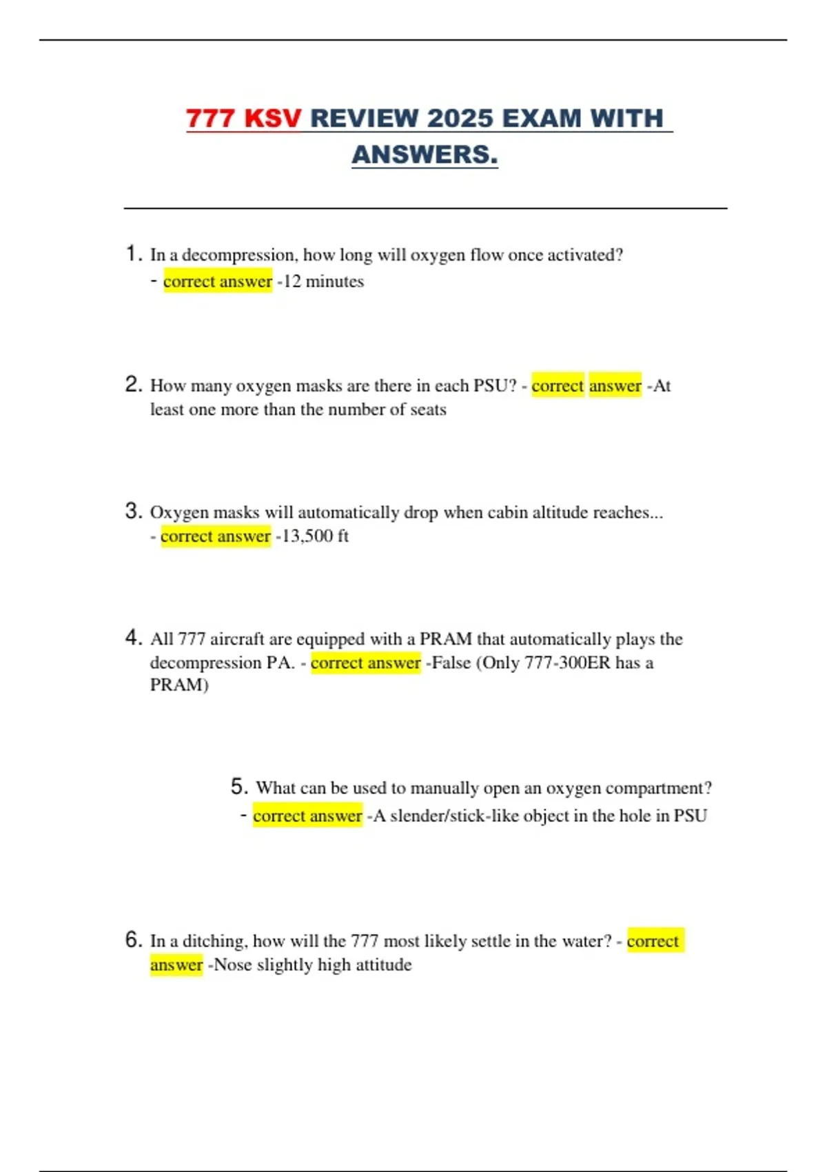 decompression PA. - correct answer -False (Only 777-300ER has a