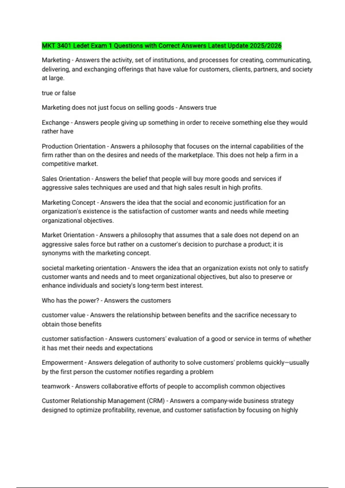 MKT 3401 Ledet Exam 1 Questions with Correct Answers Latest Update 2025/2026