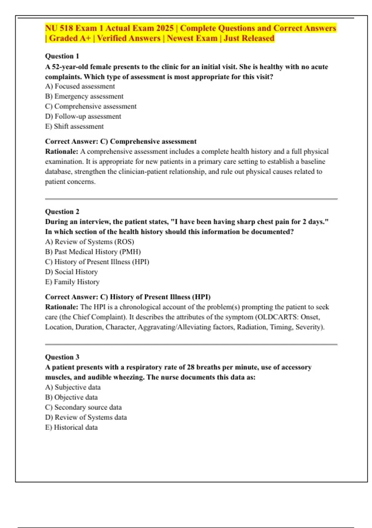 NU 518 Exam 1 Actual Exam 2025 | Complete Questions and Correct Answers