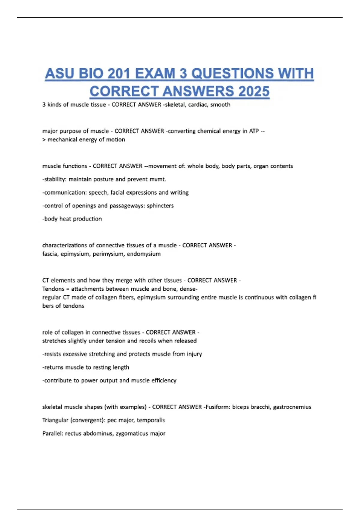 ASU BIO 201 EXAM 3 QUESTIONS WITH CORRECT ANSWERS