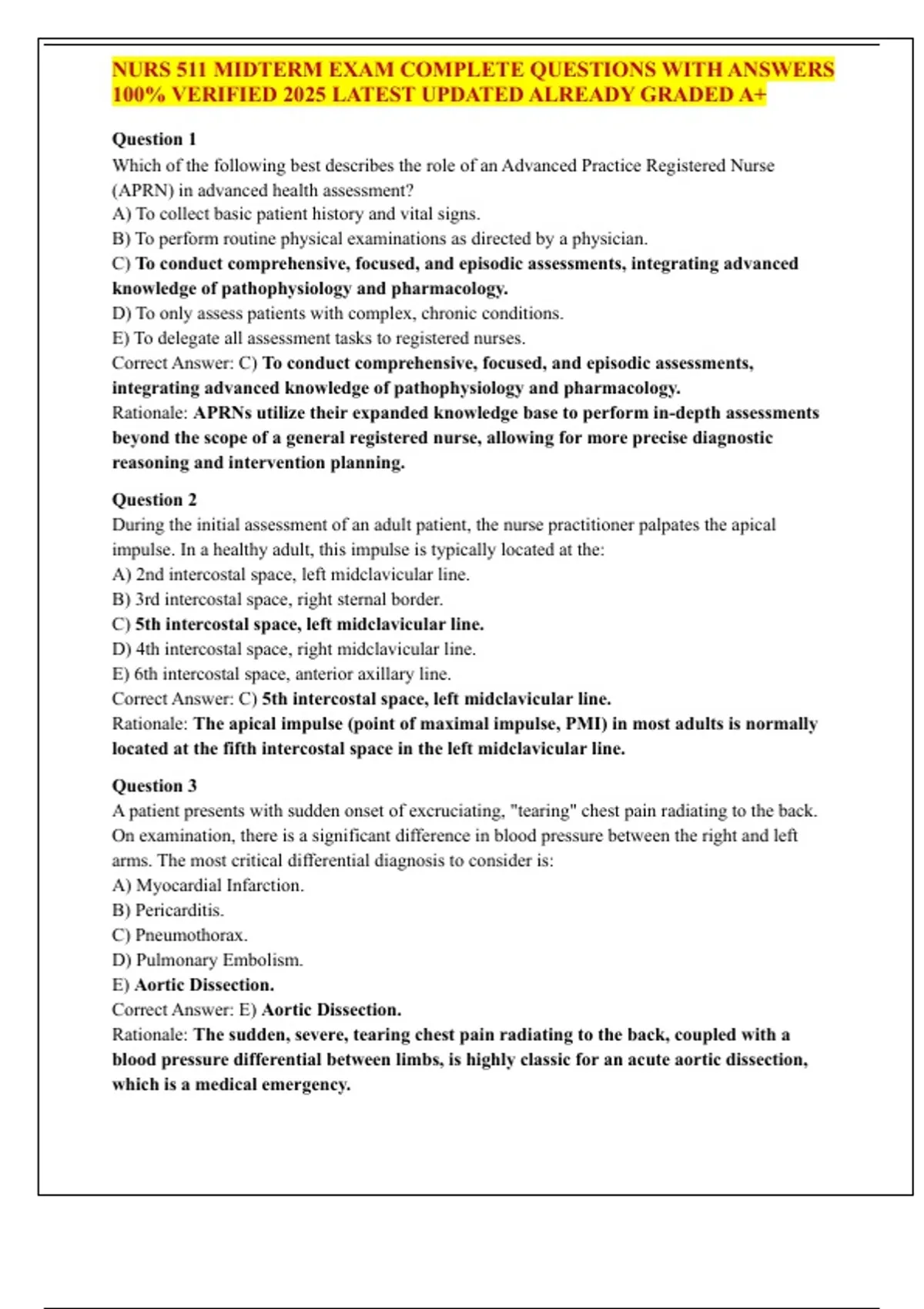 NURS 511 MIDTERM EXAM COMPLETE QUESTIONS WITH ANSWERS 100% VERIFIED 2025 LATEST UPDATED ALREADY GRADED A+