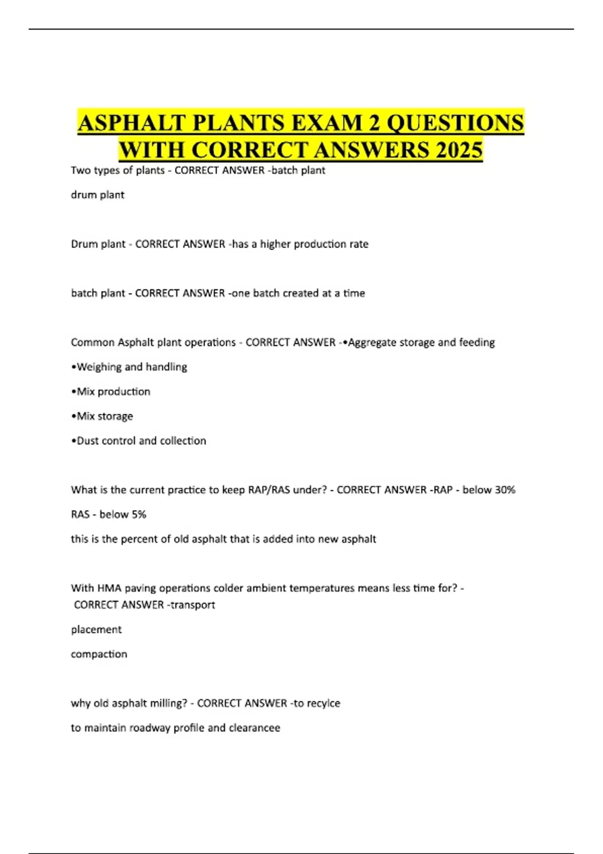 ASPHALT PLANTS EXAM 2 QUESTIONS WITH CORRECT ANSWERS