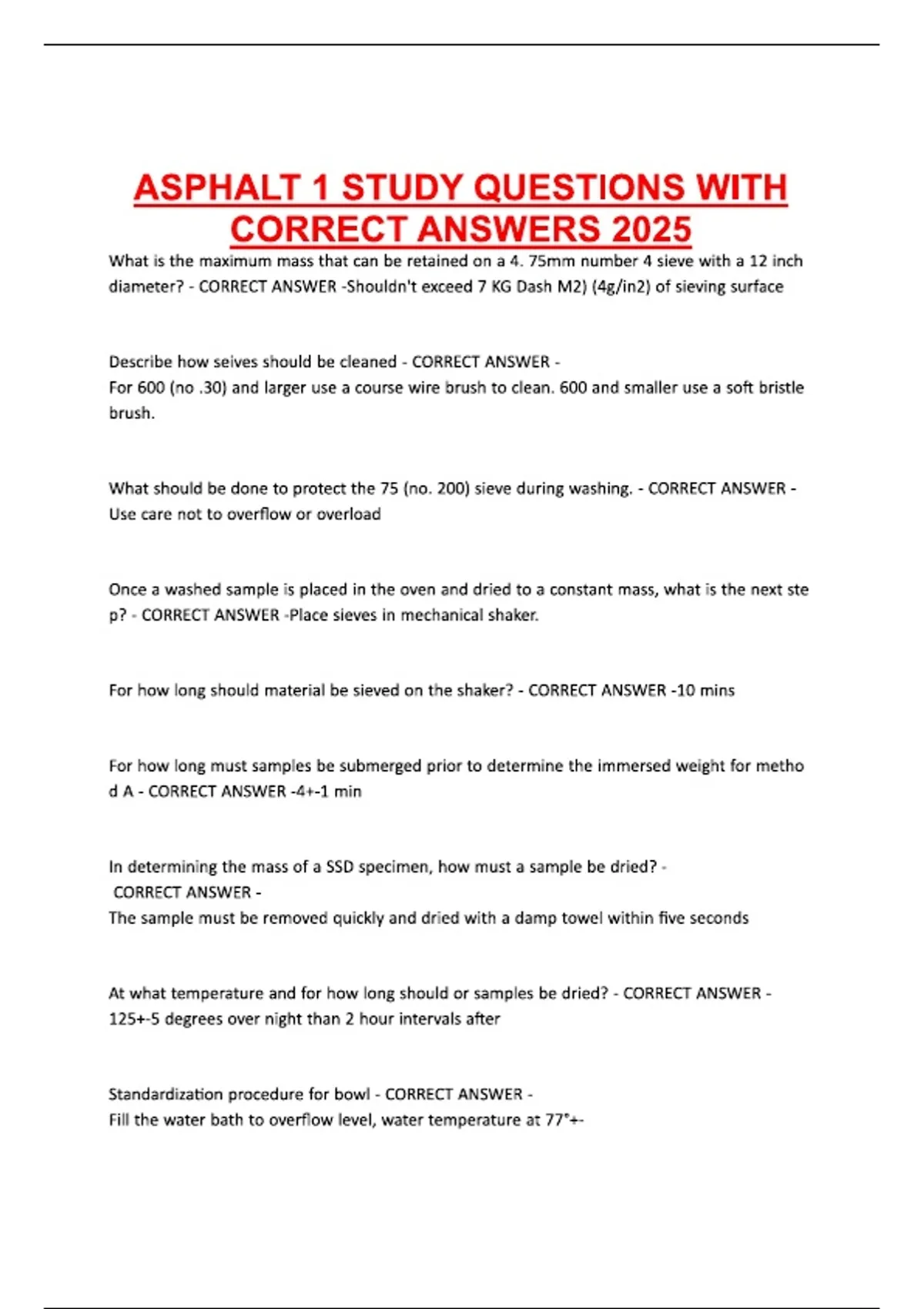 ASPHALT 1 STUDY QUESTIONS WITH CORRECT ANSWERS 2025.