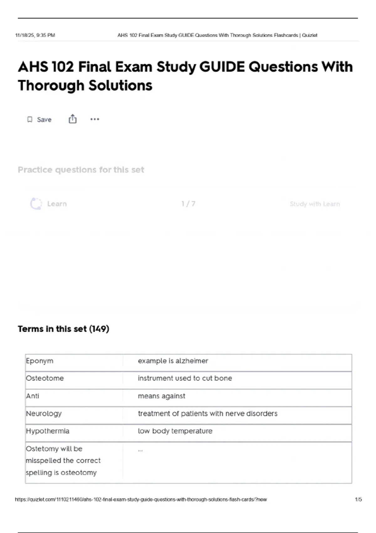 AHS 102 Final Exam Study GUIDE Questions With Thorough Solutions
