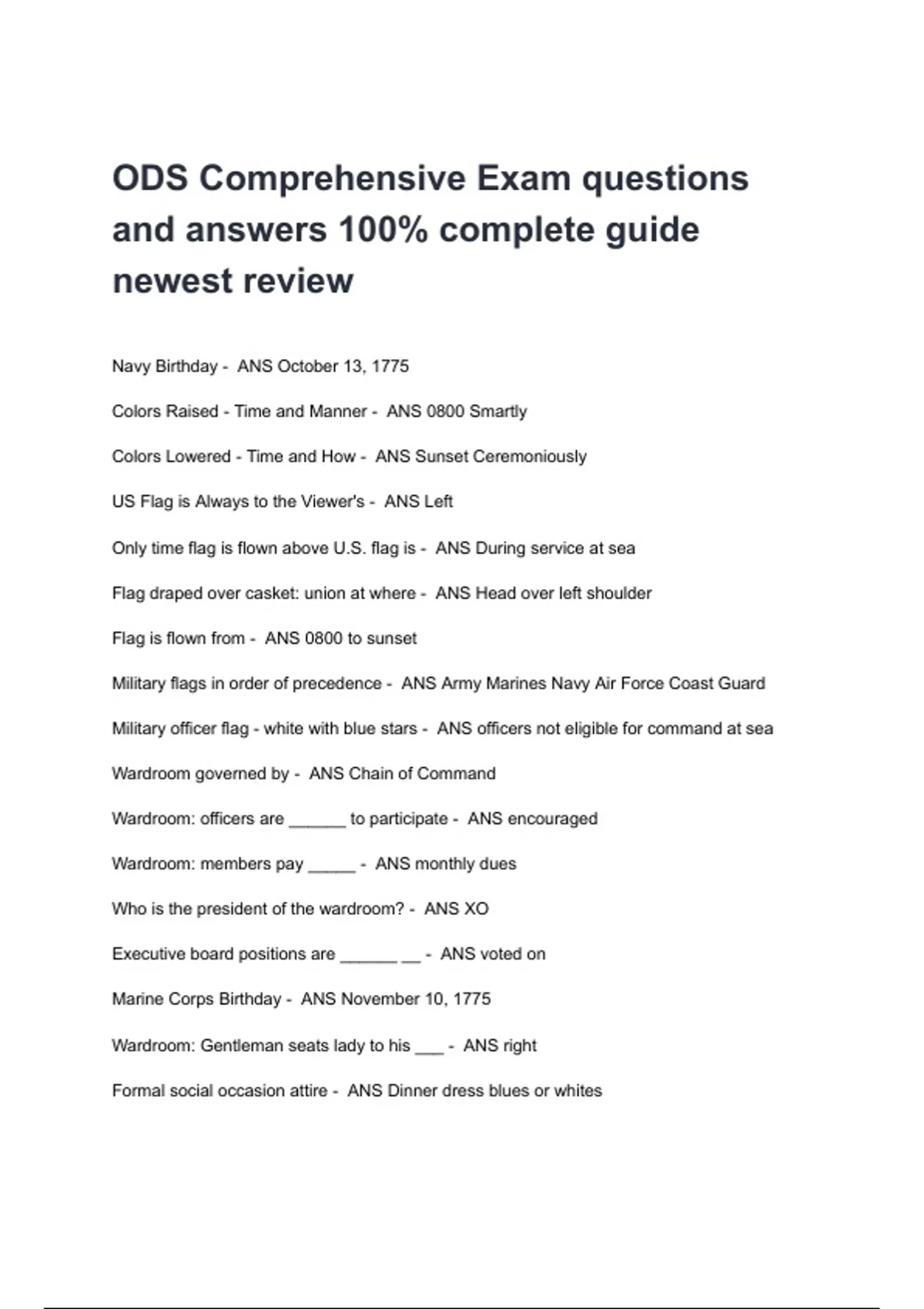 ODS Comprehensive Exam questions and answers 100% complete guide newest review