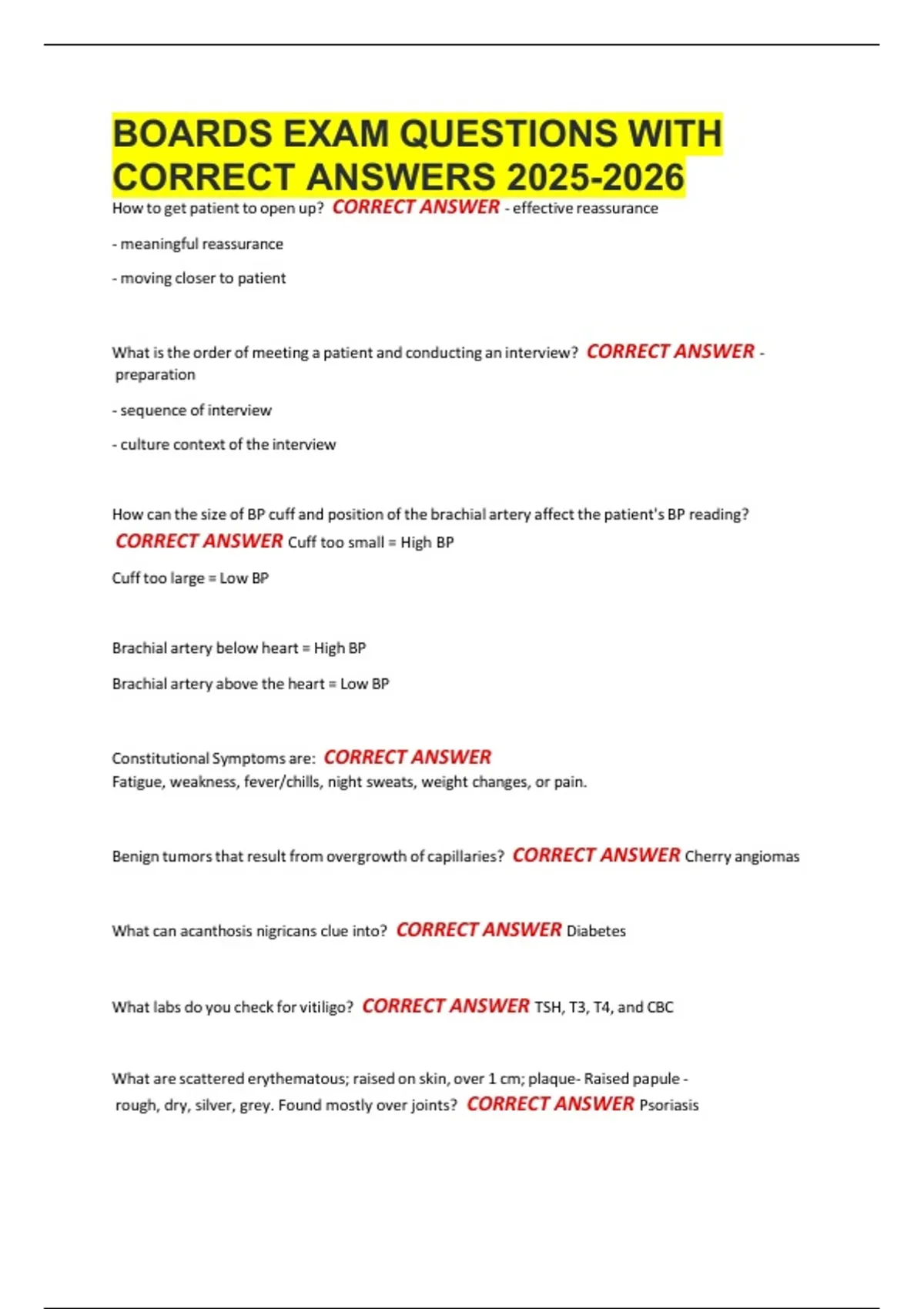 BOARDS EXAM QUESTIONS WITH CORRECT ANSWERS .