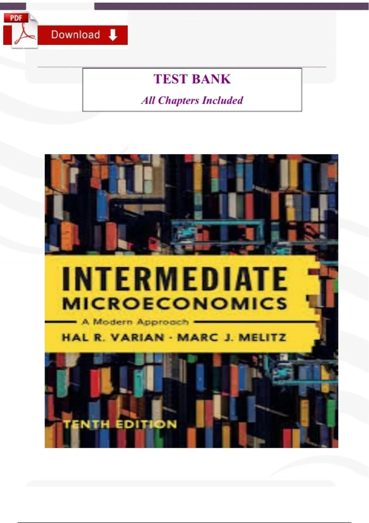 Test Bank for Intermediate Microeconomics A Modern Approach, 10th Edition by Hal Varian (All Chapters) Latest Complete Guide A+