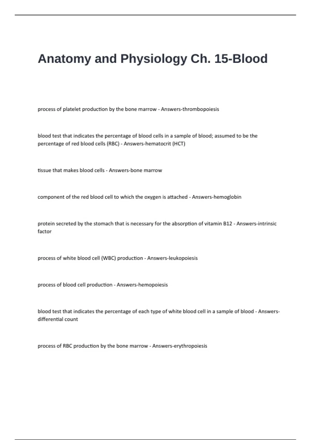 Anatomy and Physiology Ch. 15-Blood
