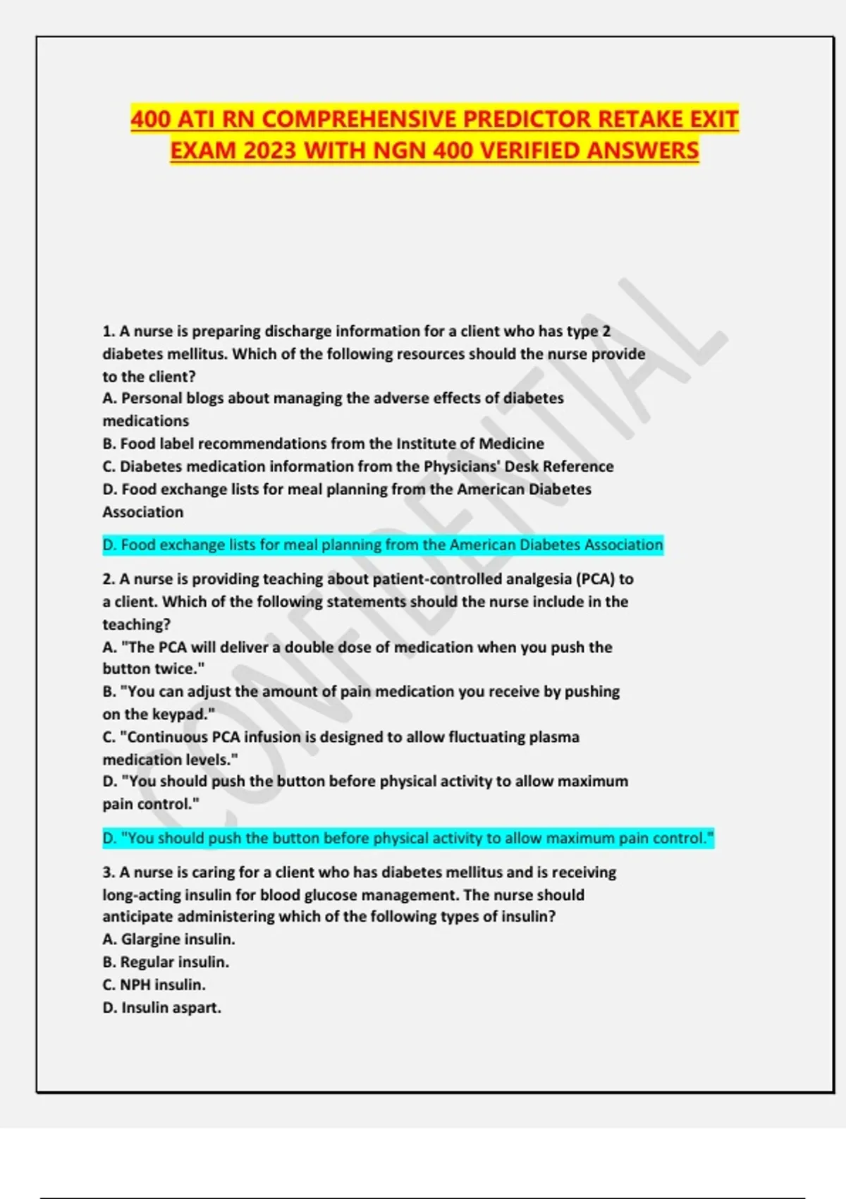EXAM 2023 WITH NGN 400 VERIFIED ANSWERS