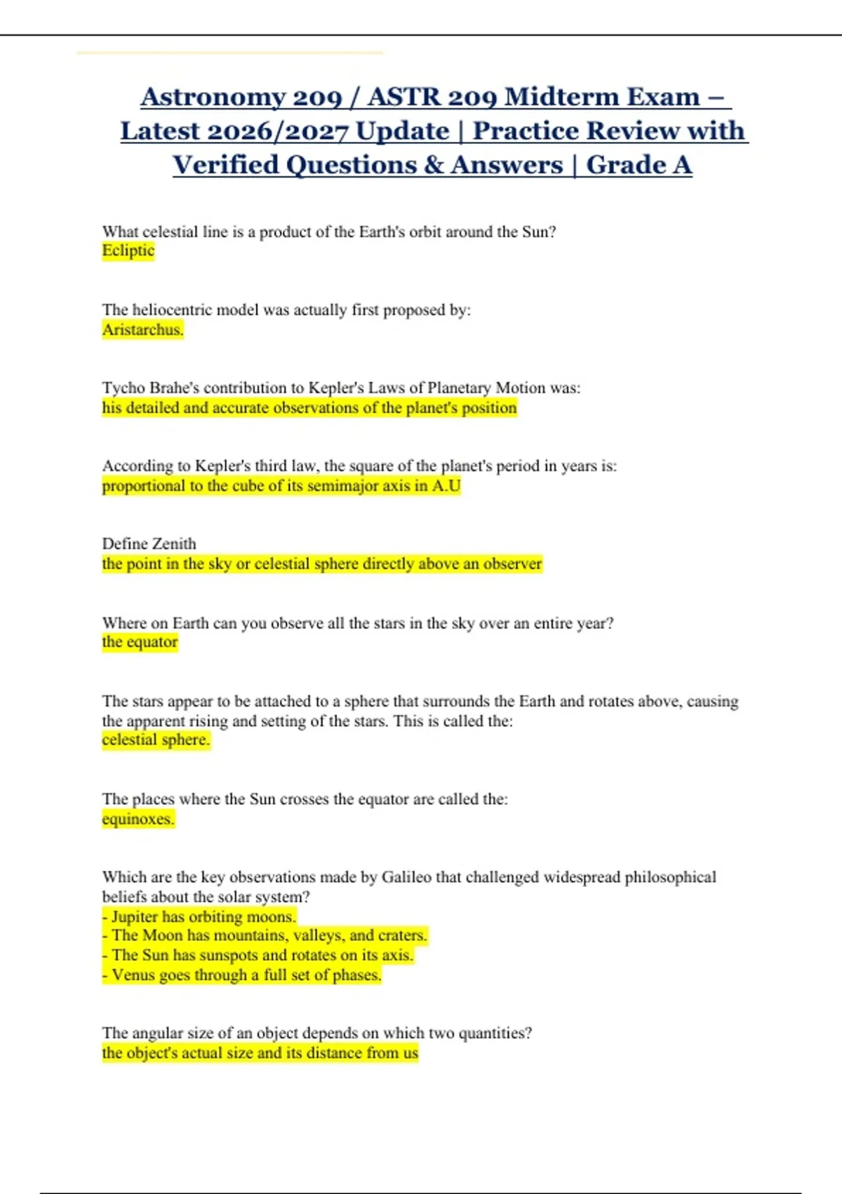 Astronomy 209 / ASTR 209 Midterm Exam – Latest 2026/2027 Update | Practice Review with Verified Questions & Answers | Grade A