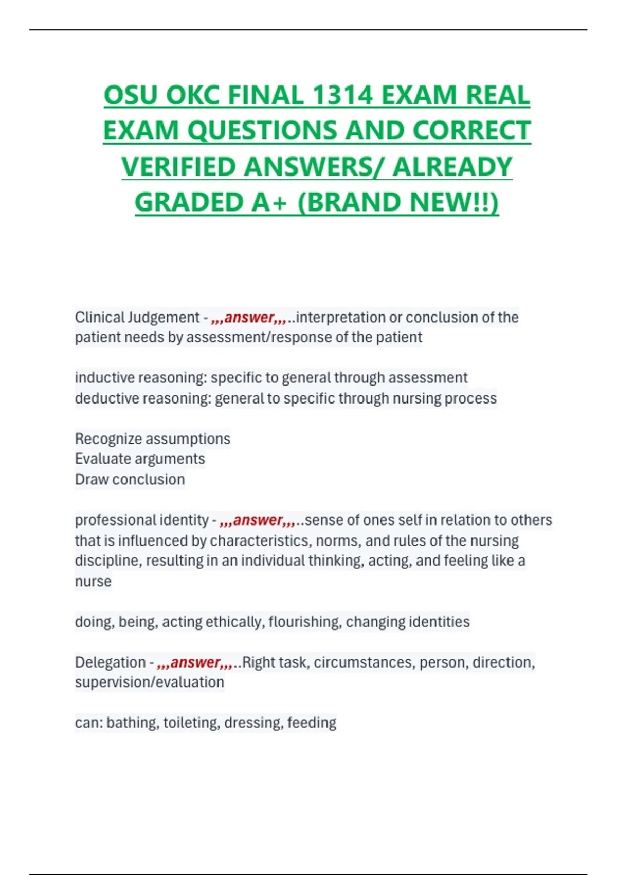 Clinical Judgement - ,,,answer,,,..interpretation or conclusion of the