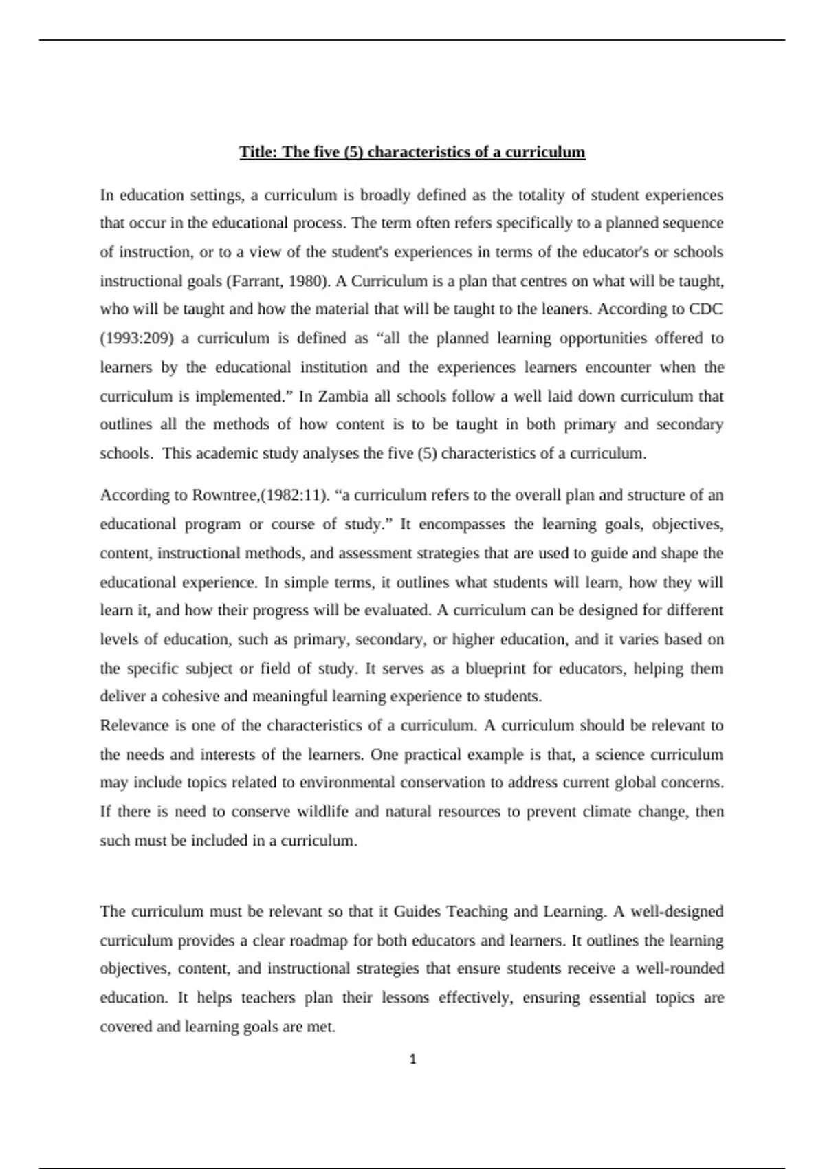 schools. This academic study analyses the five (5) characteristics of a curriculum.
