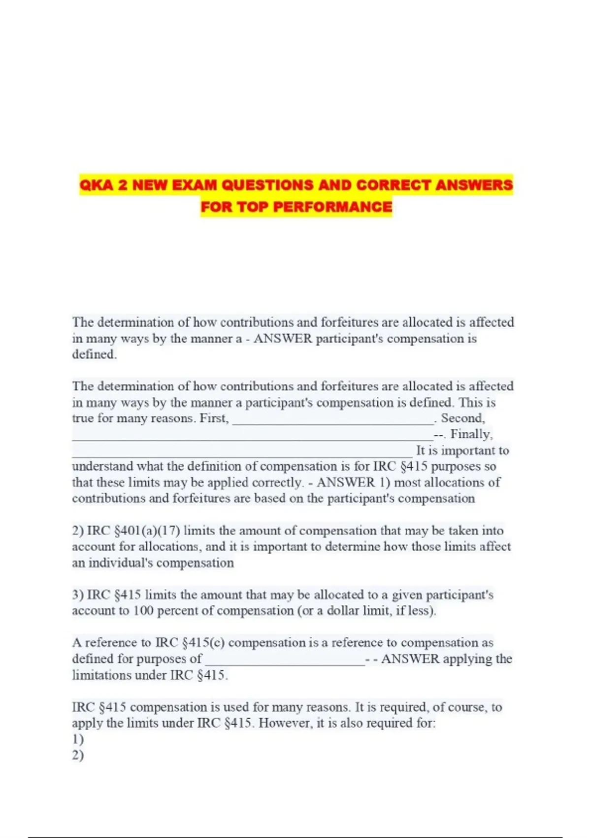 QKA 2 NEW EXAM QUESTIONS AND CORRECT ANSWERS FOR TOP PERFORMANCE