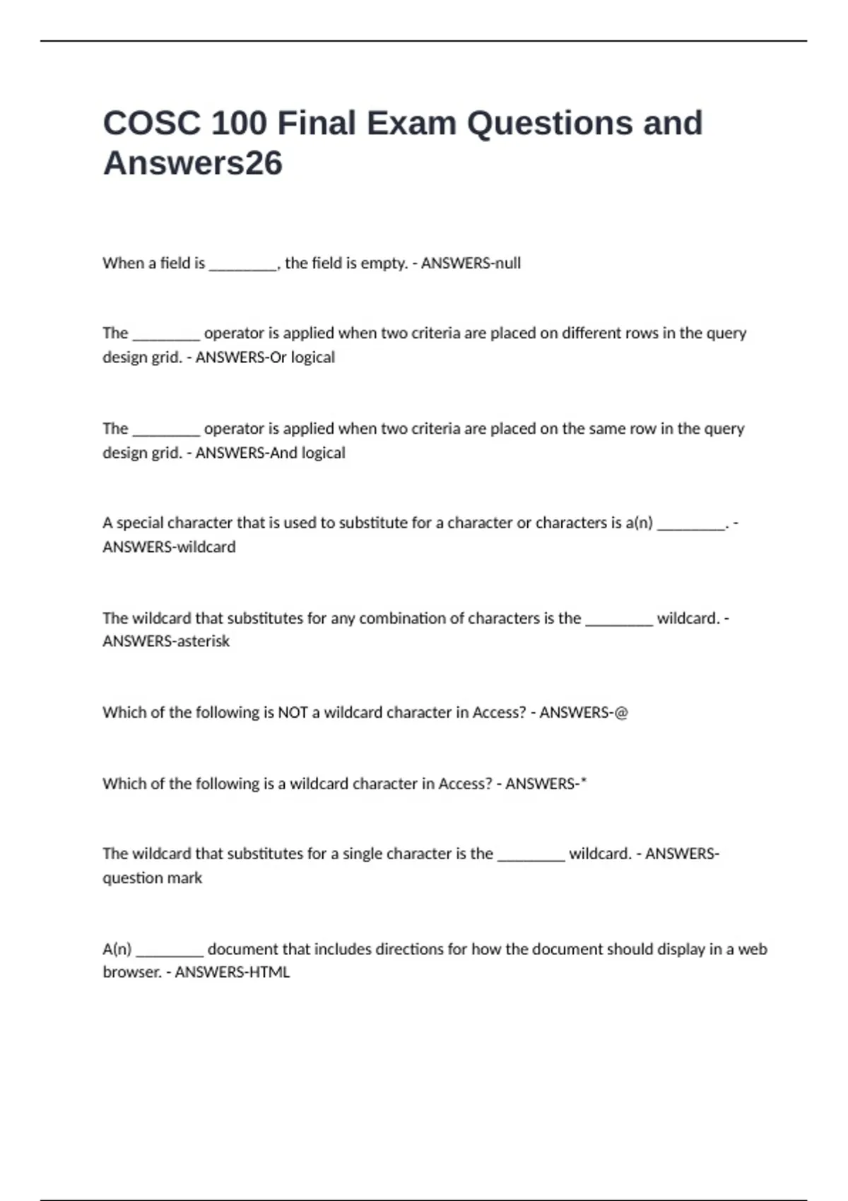 Which of the following is a wildcard character in Access? - ANSWERS-*