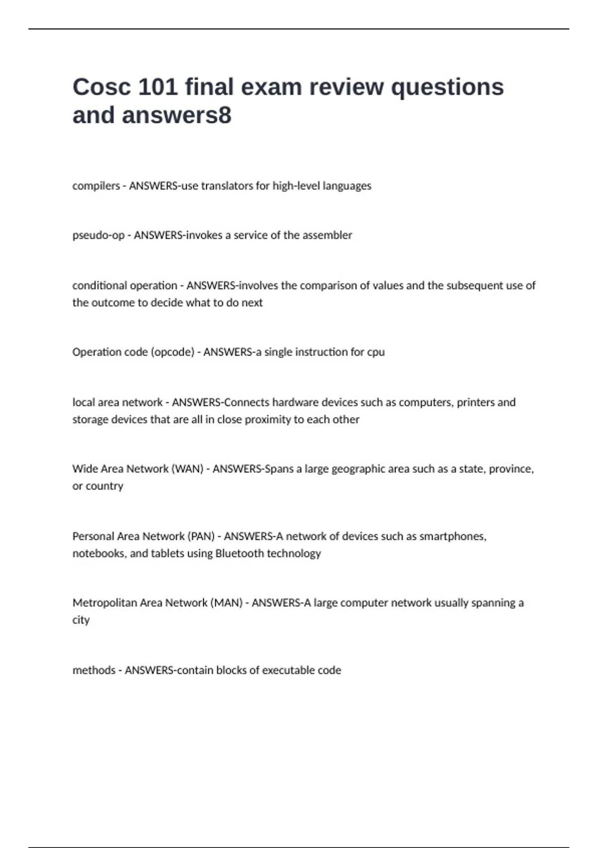 Wide Area Network (WAN) - ANSWERS-Spans a large geographic area such as a state, province,