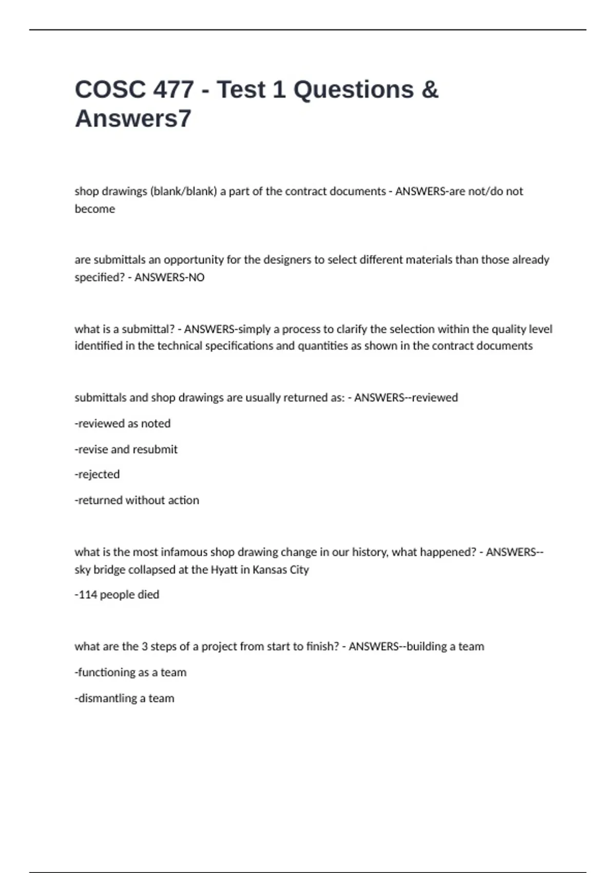 submittals and shop drawings are usually returned as: - ANSWERS--reviewed