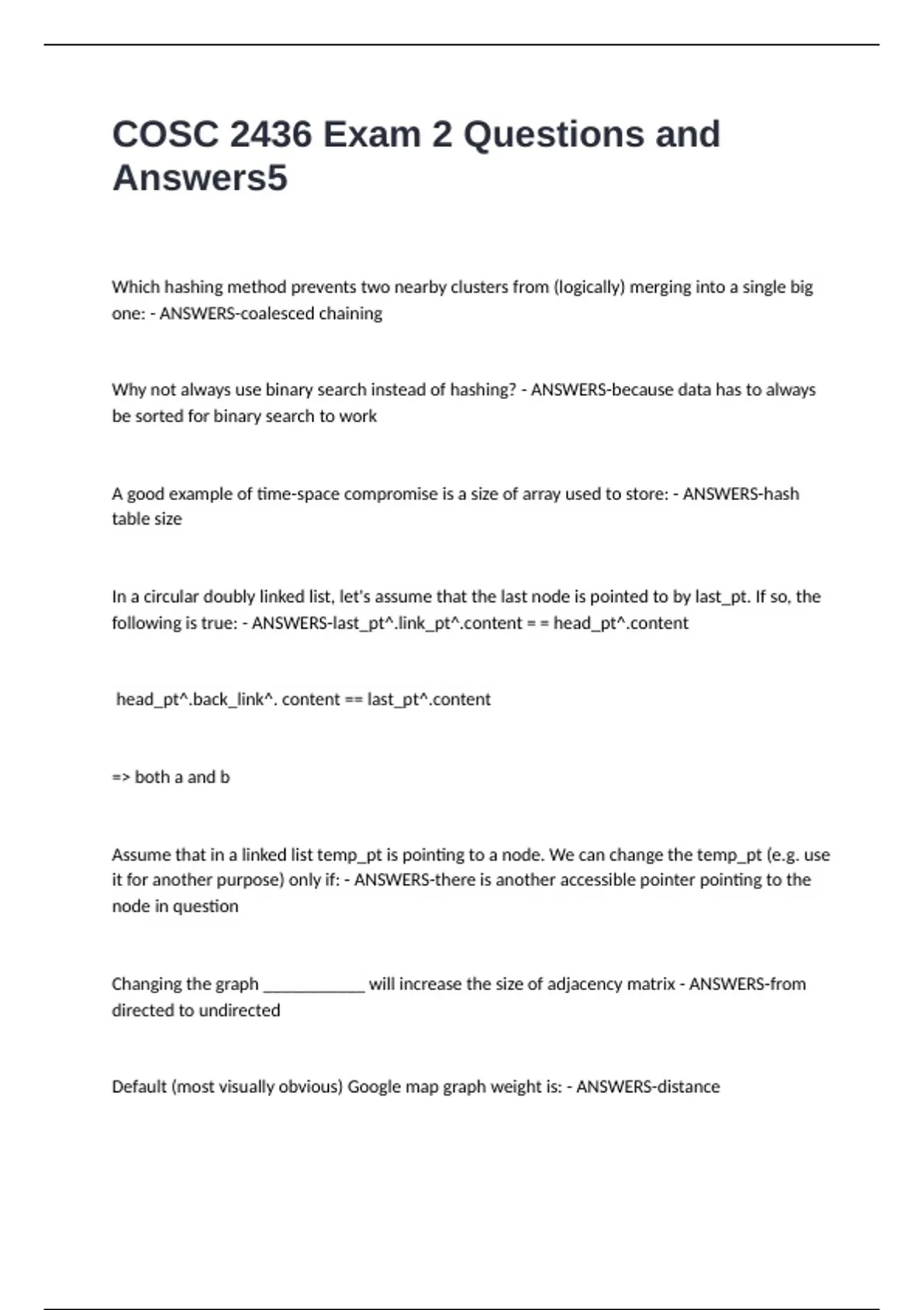 COSC 2436 Exam 2 Questions and