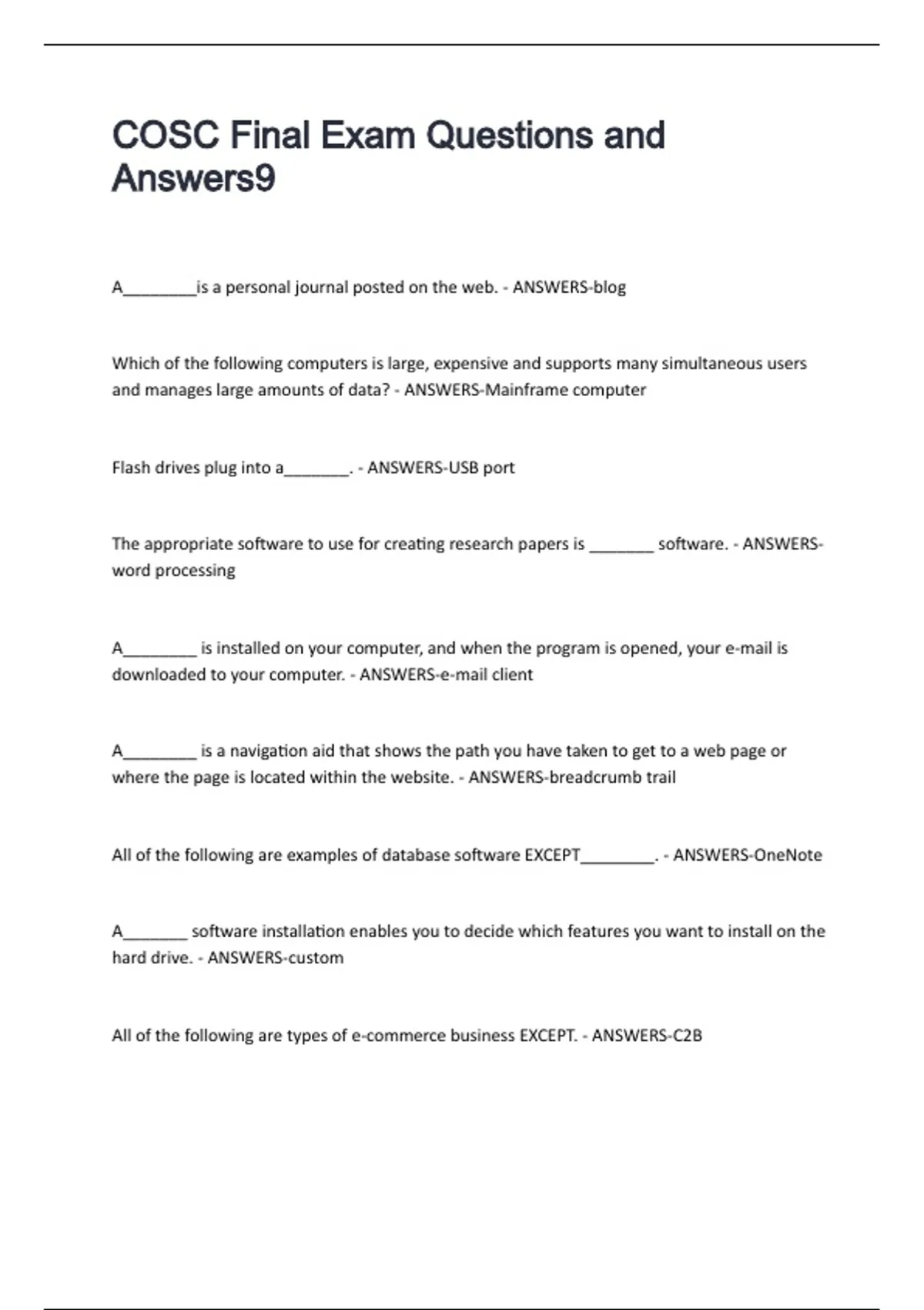 COSC Final Exam Questions and