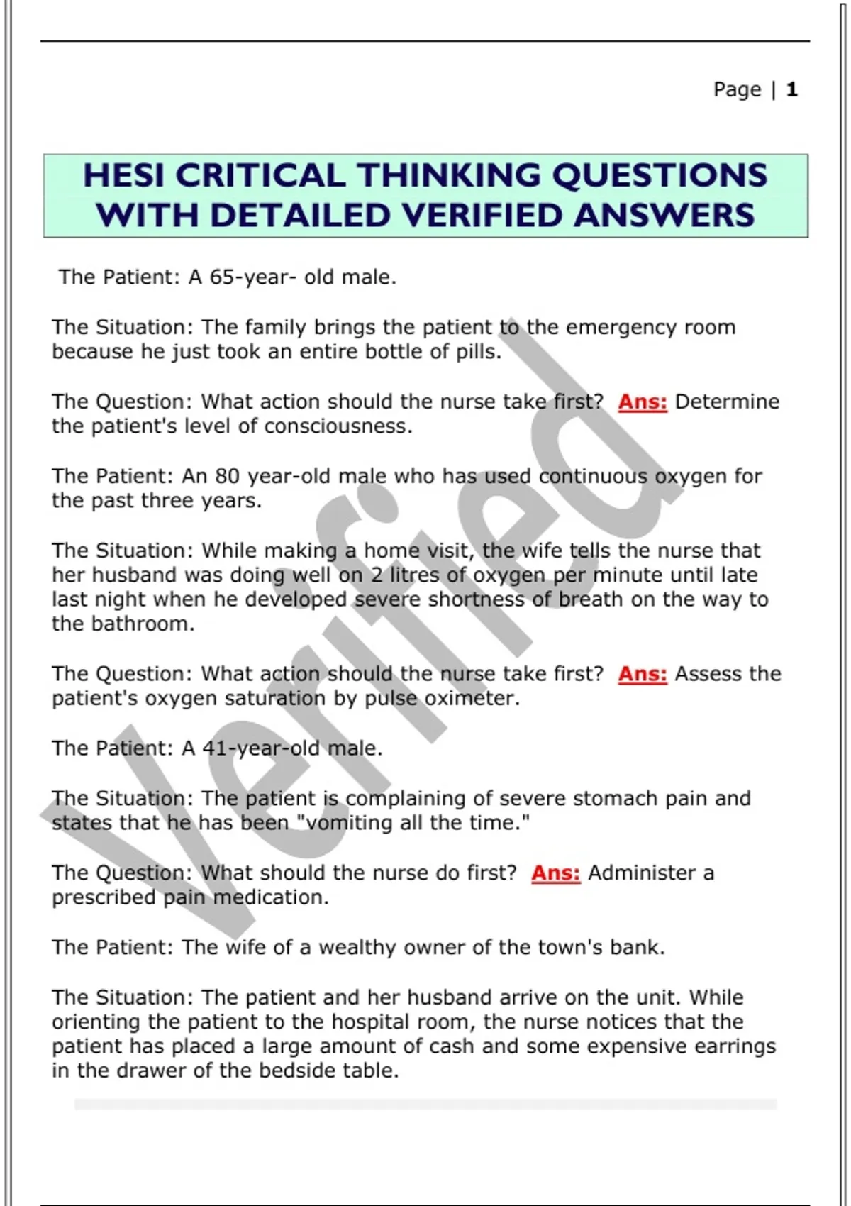 The Question: What action should the nurse take first? Ans: Determine