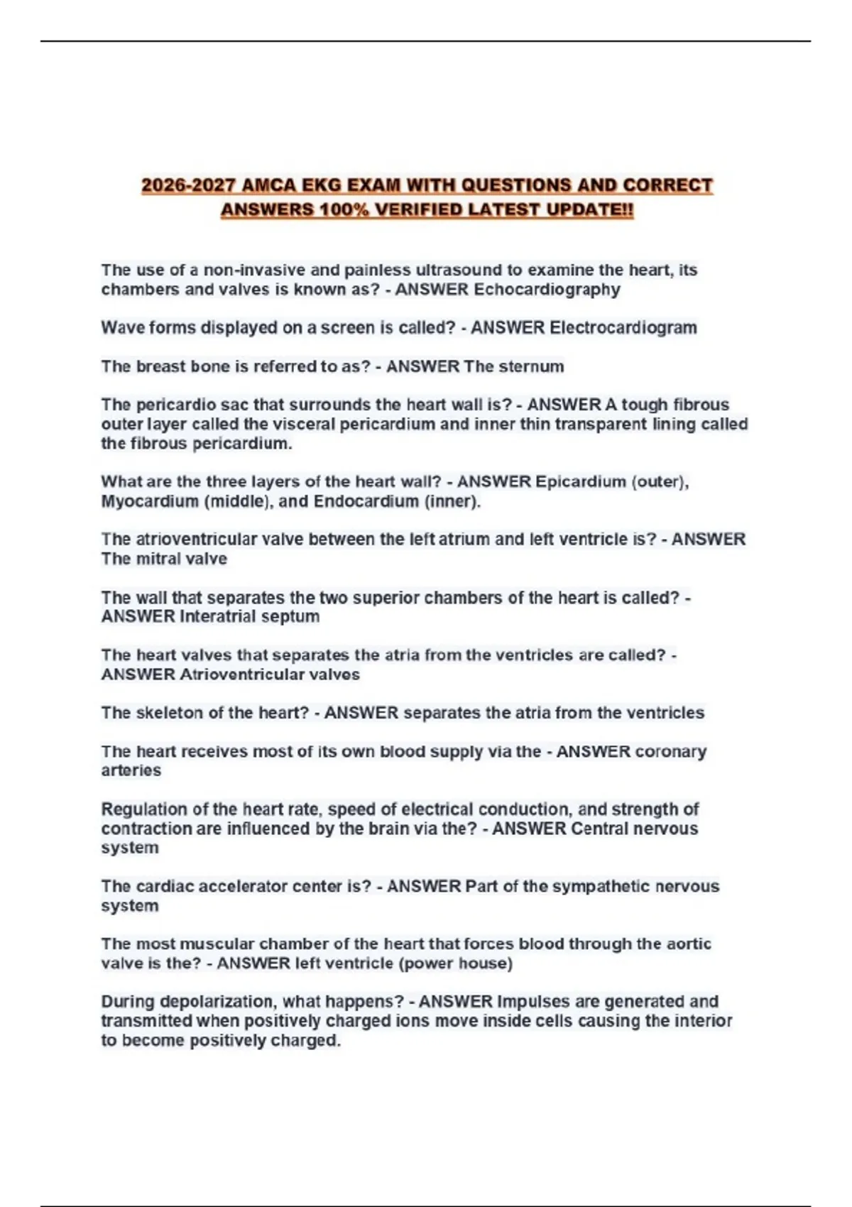 AMCA EKG EXAM WITH QUESTIONS AND CORRECT ANSWERS 100% VERIFIED LATEST UPDATE!!...