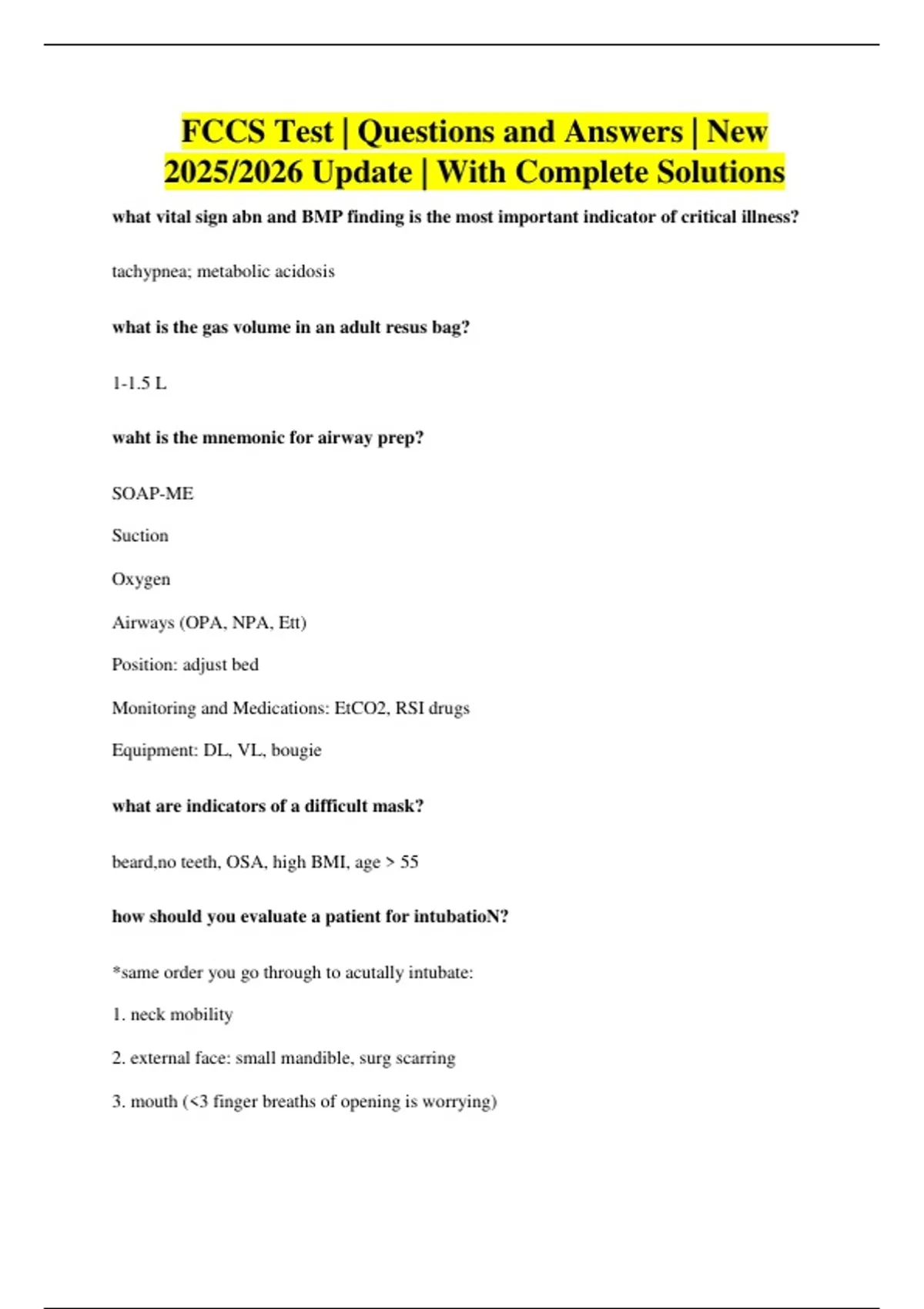 FCCS Test | Questions and Answers | New 2025/2026 Update | With Complete Solutions