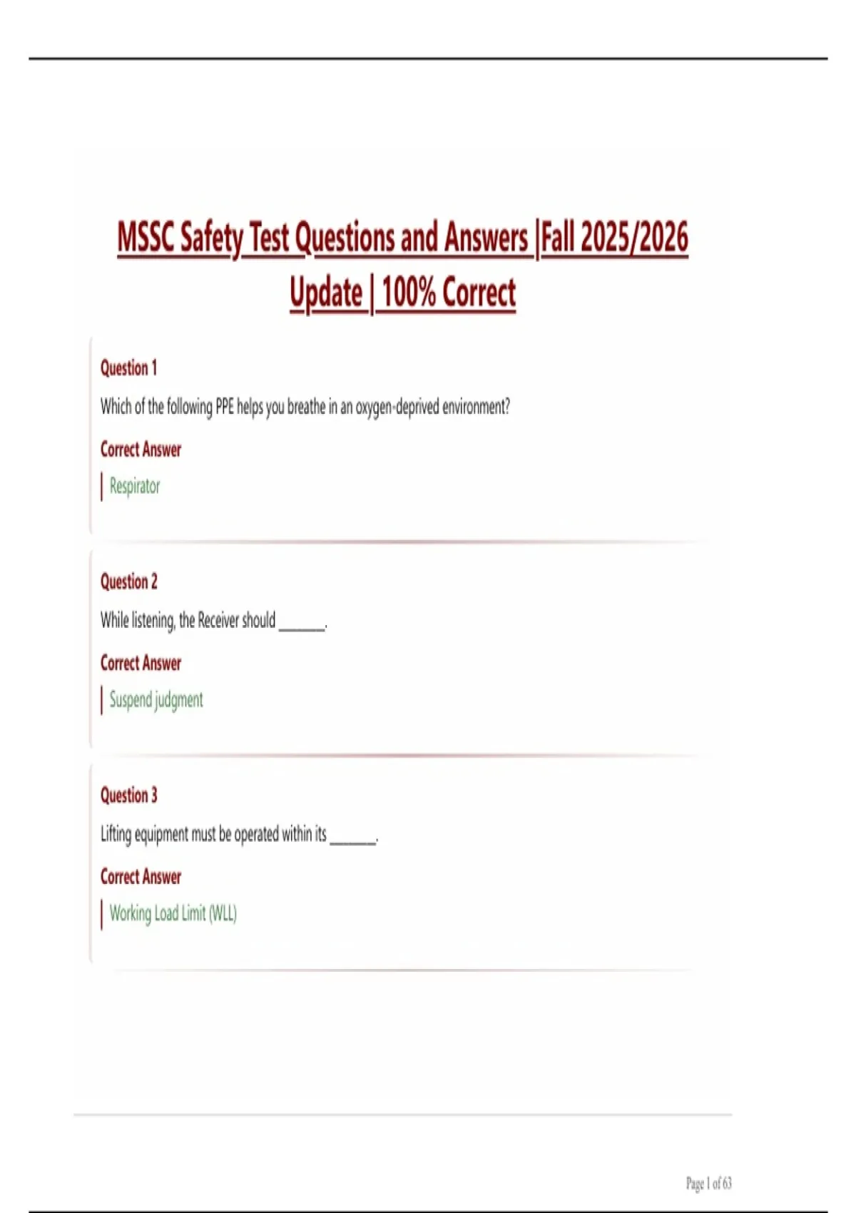 MSSC Safety Test Questions and Answers |Fall 2025/2026