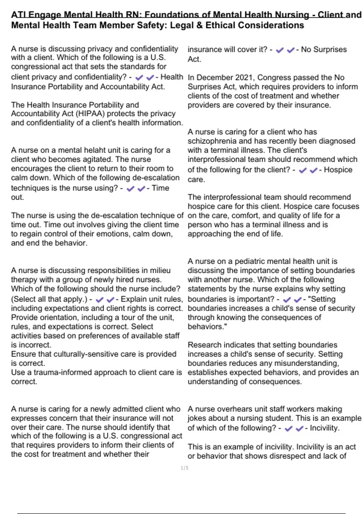 ATI Engage Mental Health RN: Foundations of Mental Health Nursing - Client and Mental Health Team Member Safety: Legal & Ethical Considerations