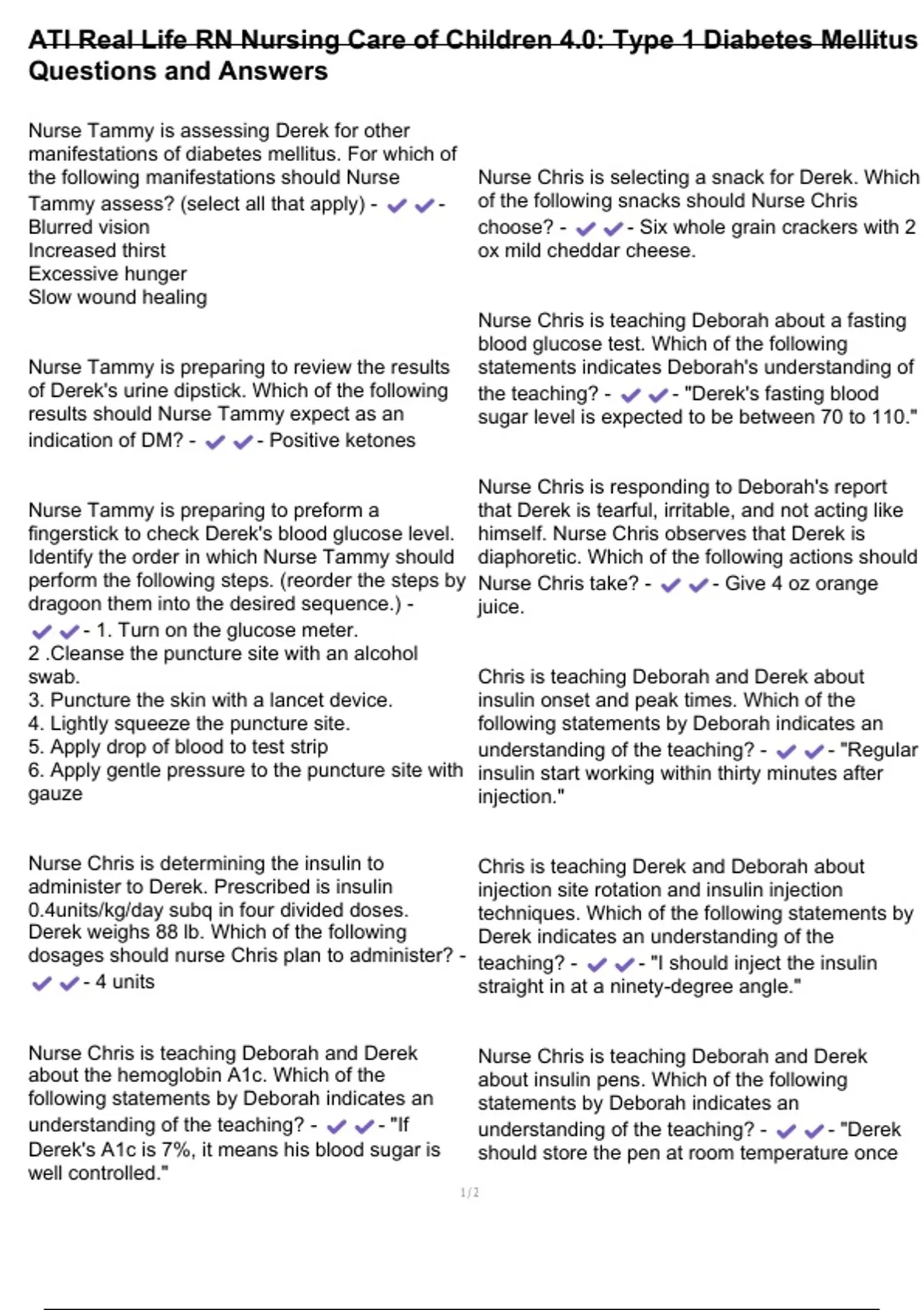 fingerstick to check Derek's blood glucose level. himself. Nurse Chris observes that Derek is