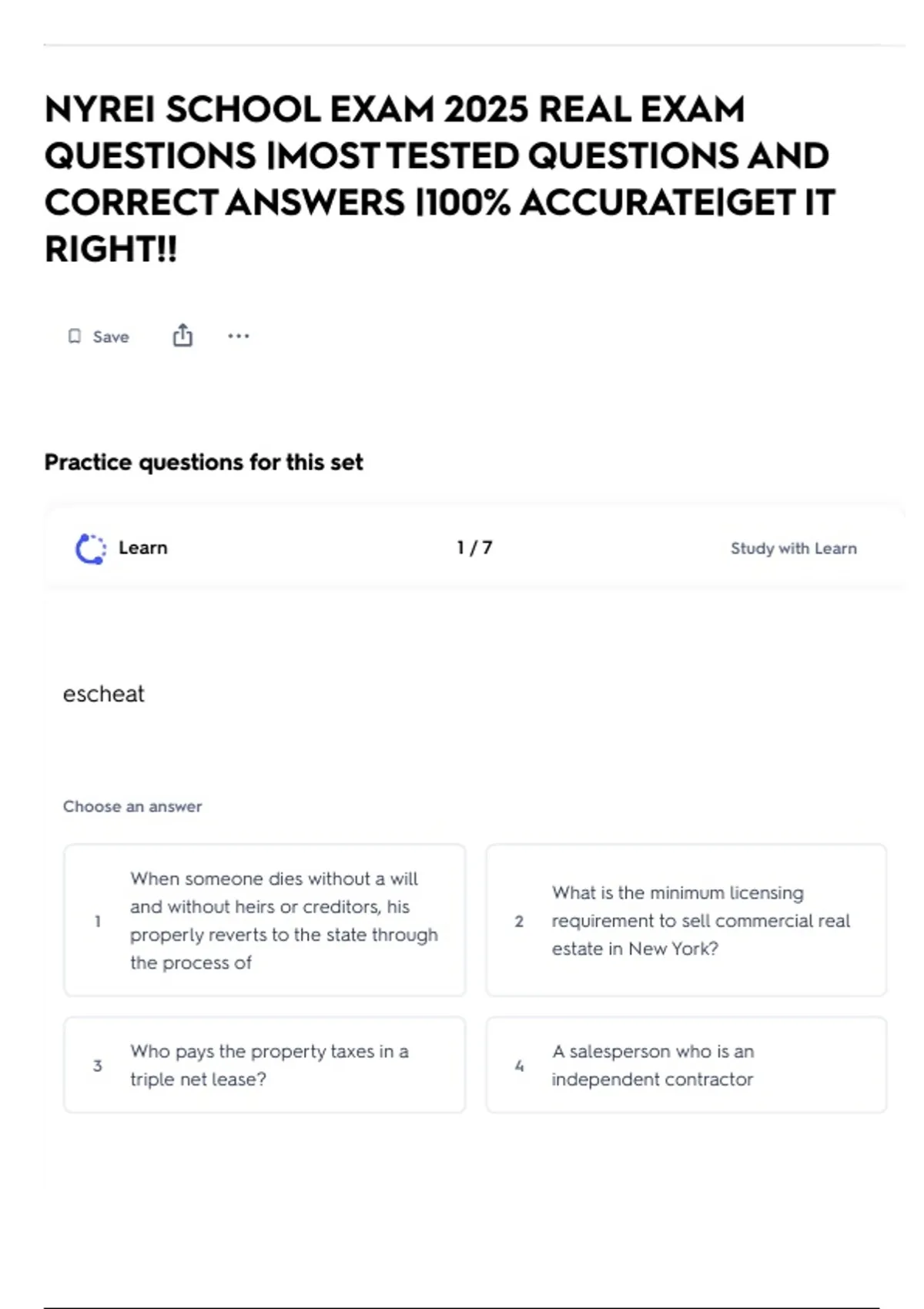 NYREI SCHOOL EXAM 2025 REAL EXAM