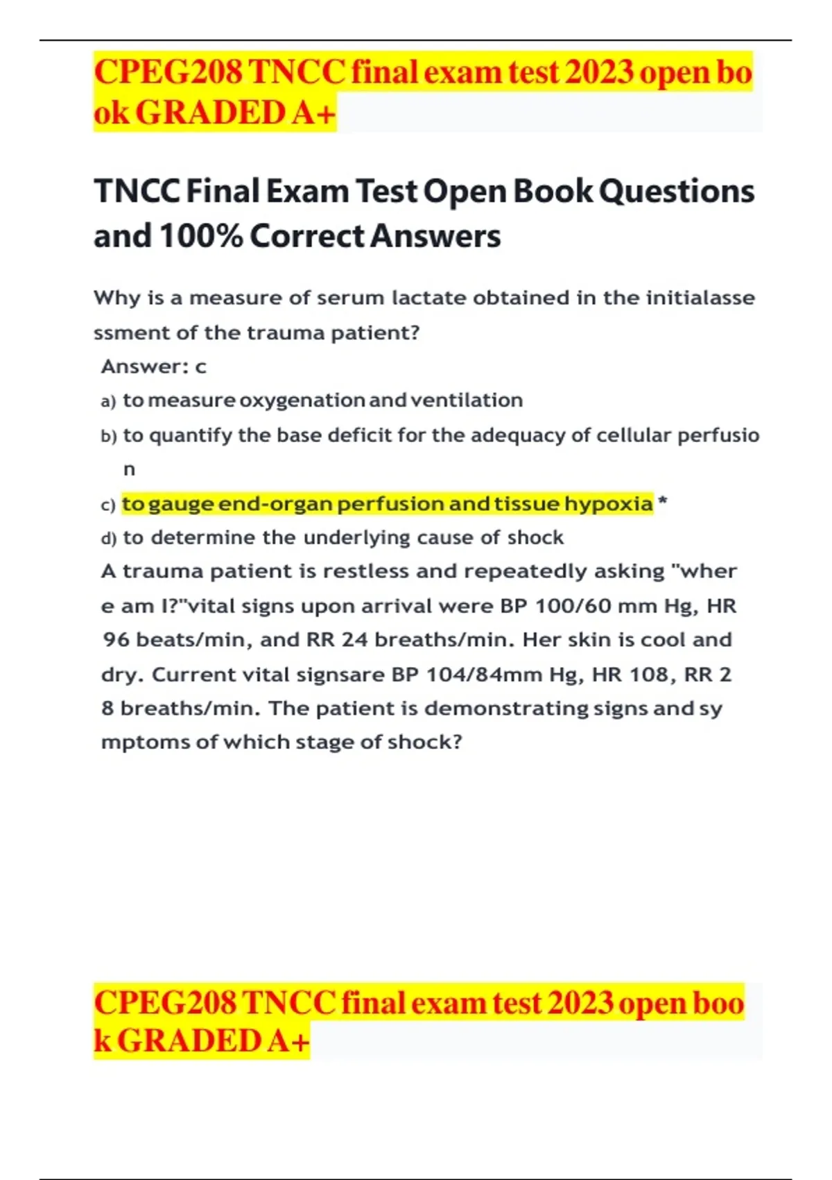 TNCC Final Exam Test Open Book Questions hi hi hi hi hi hi hi