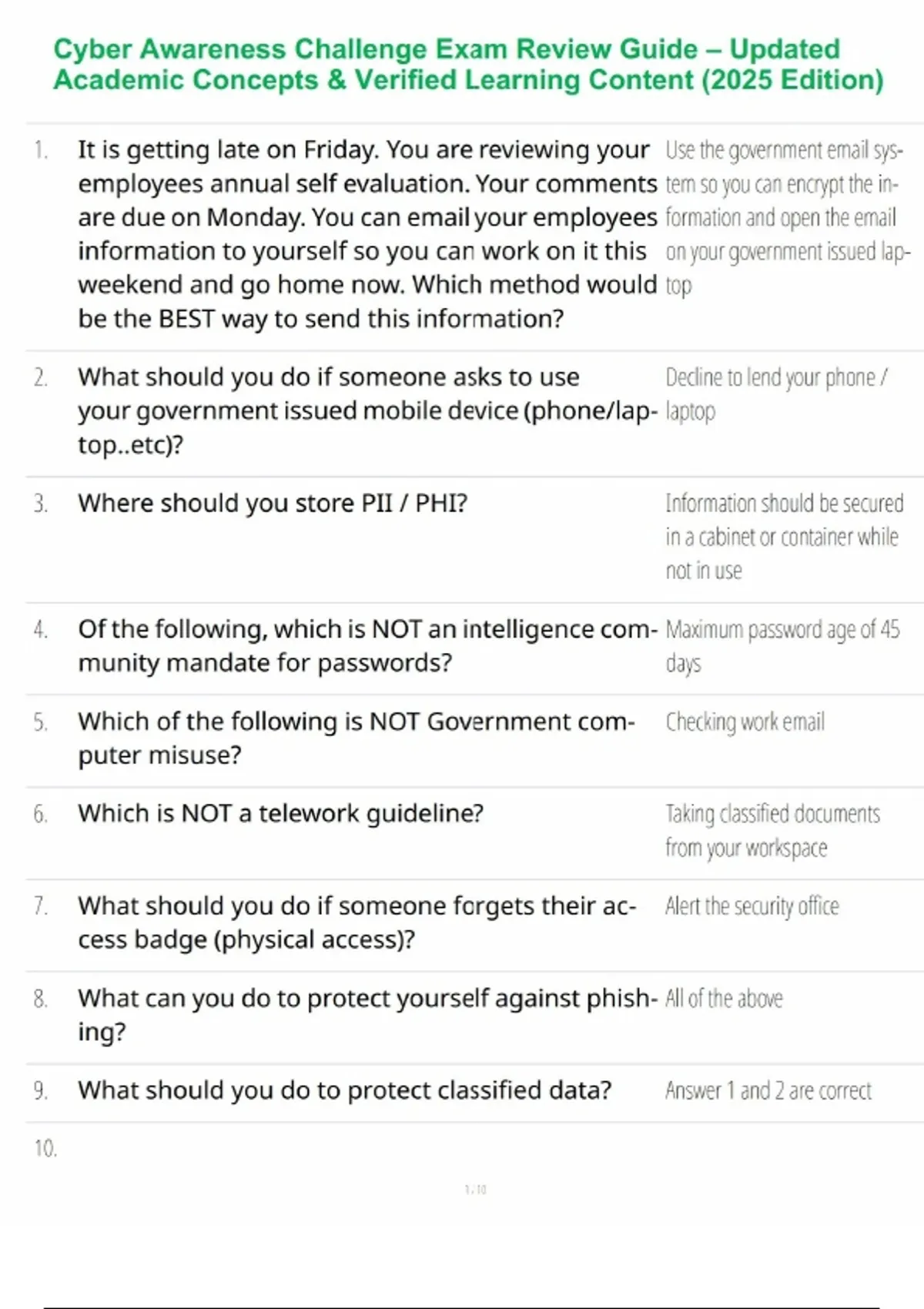 This Cyber Awareness Challenge Exam Review Guide offers structured learning support for individuals reinforcing knowledge of cybersecurity awareness principles. It emphasizes key academic topics such as threat identification, data protection best practices, safe information handling, access controls, digital communication security, and organizational policy standards. Designed to strengthen comprehension, this guide assists users in reviewing cybersecurity fundamentals commonly emphasized in institutional learning and assessment environments. Its structured presentation helps learners evaluate readiness, reinforce critical thinking, and apply foundational cybersecurity awareness in academic or training-based contexts.