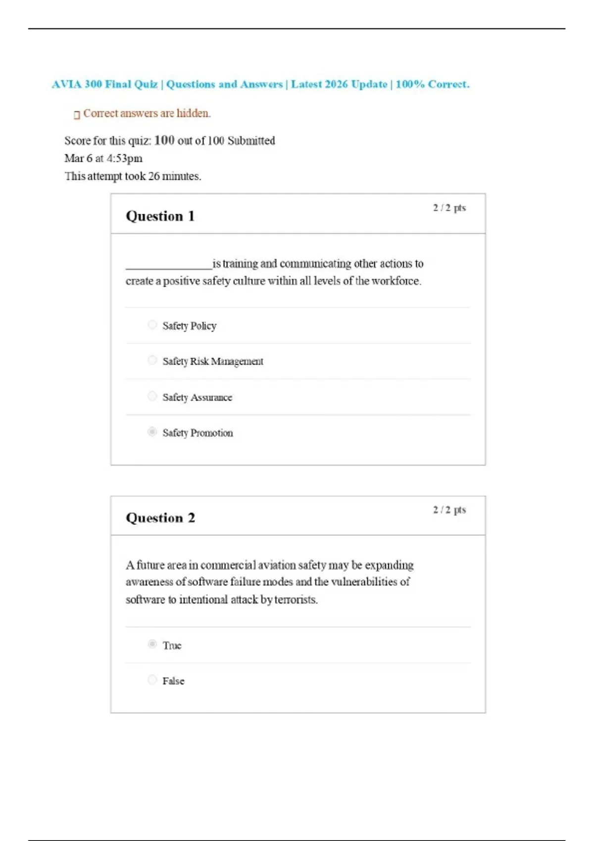 AVIA 300 Final Quiz | Questions and Answers | Latest 2026 Update | 100% Correct.
