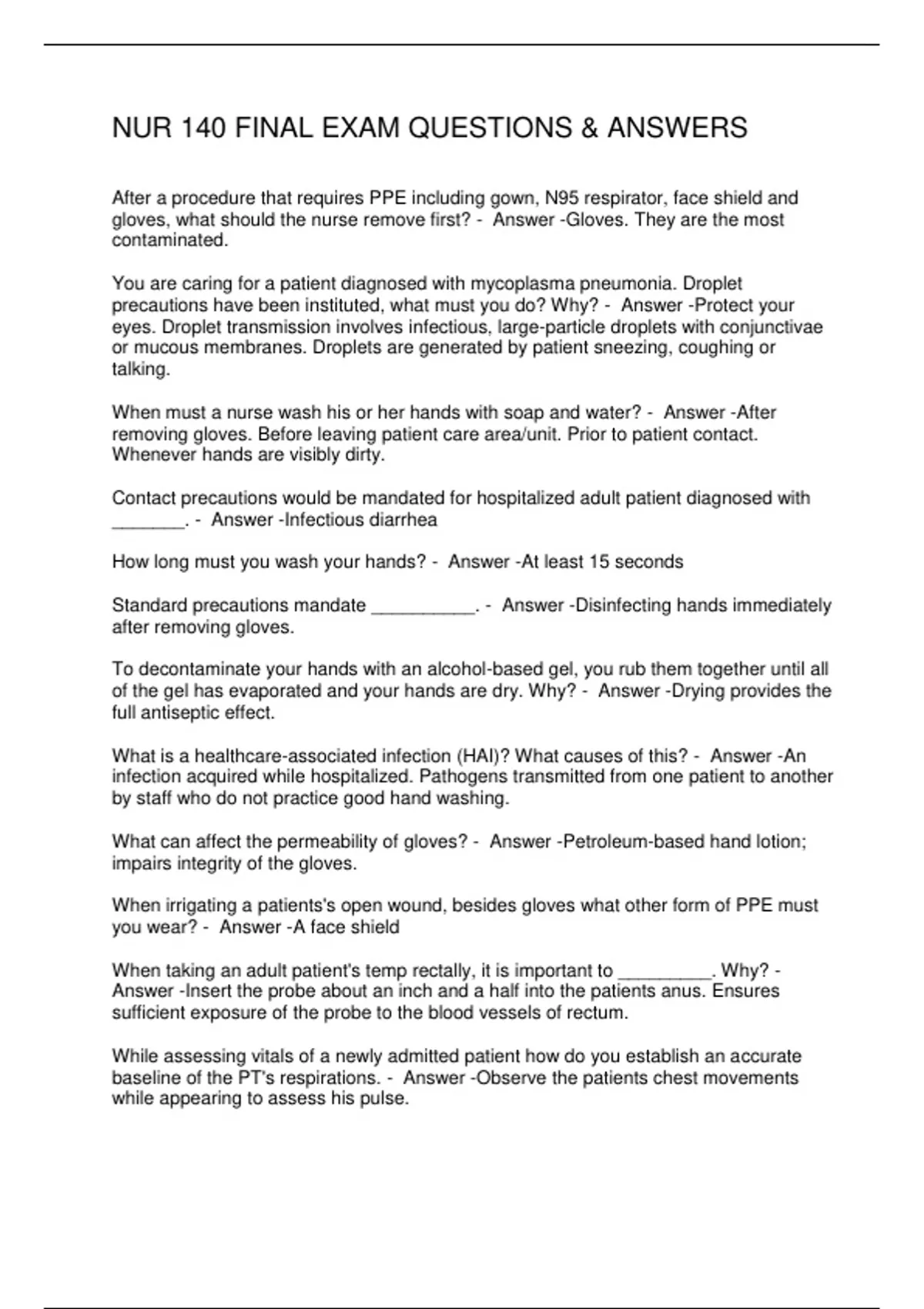 NUR 140 FINAL EXAM QUESTIONS & ANSWERS