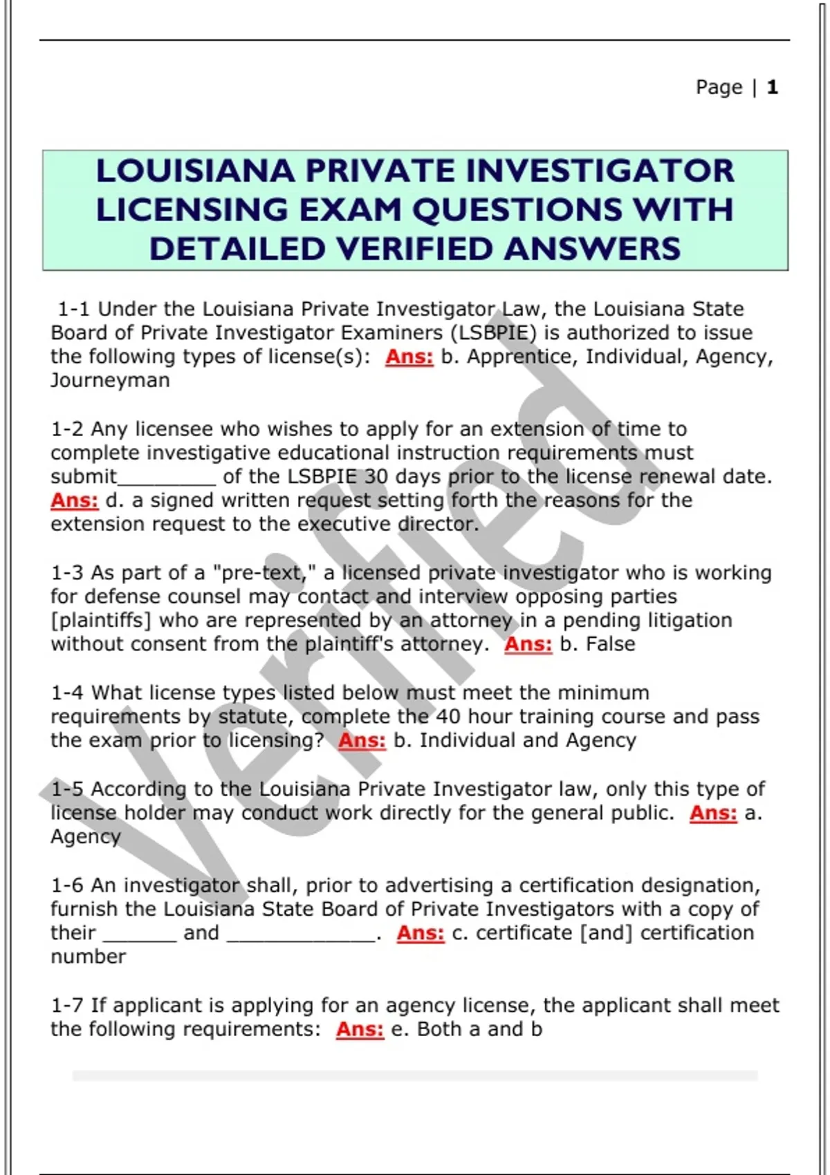 1-1 Under the Louisiana Private Investigator Law, the Louisiana State