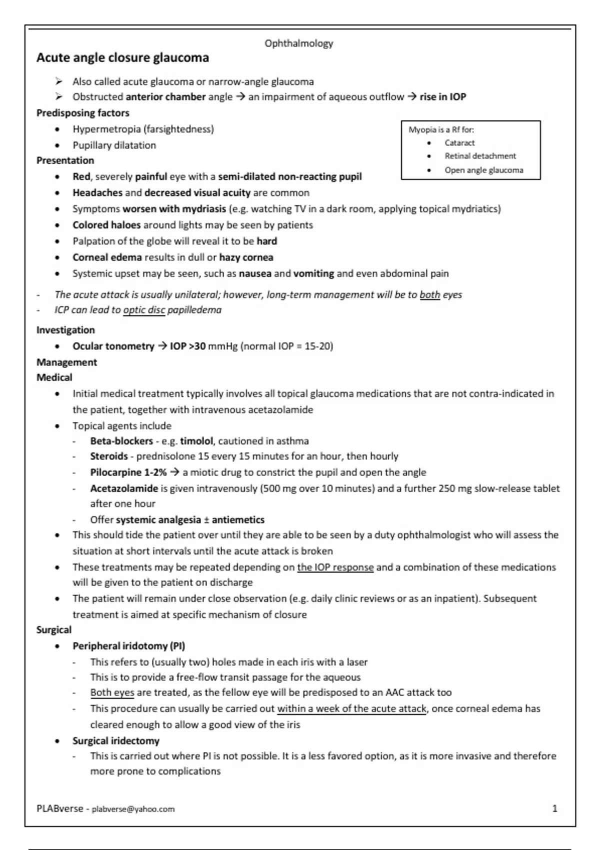 - The acute attack is usually unilateral; however, long-term management will be to both eyes