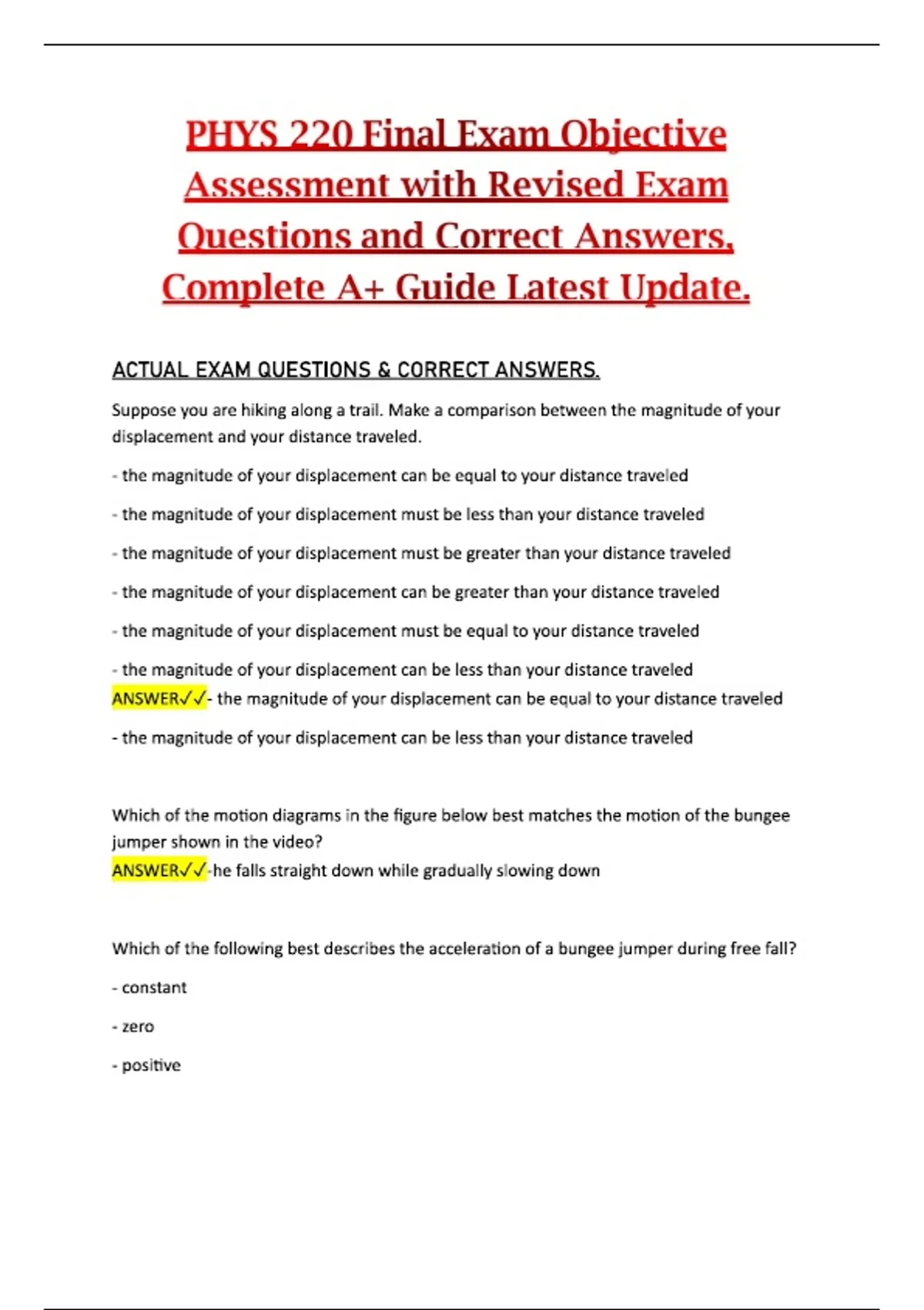 This document provides an updated objective assessment for the PHYS 220 Final Exam, featuring revised exam questions and verified correct answers. It covers all major physics concepts, problem-solving methods, and cumulative principles assessed throughout the entire course. The material is structured to deliver a complete and reliable review to support strong final exam preparation and mastery of key topics.This document provides an updated objective assessment for the PHYS 220 Final Exam, featuring revised exam questions and verified correct answers. It covers all major physics concepts, problem-solving methods, and cumulative principles assessed throughout the entire course. The material is structured to deliver a complete and reliable review to support strong final exam preparation and mastery of key topics.This document provides an updated objective assessment for the PHYS 220 Final Exam, featuring revised exam questions and verified correct answers. It covers all major physics concepts, problem-solving methods, and cumulative principles assessed throughout the entire course. The material is structured to deliver a complete and reliable review to support strong final exam preparation and mastery of key topics.