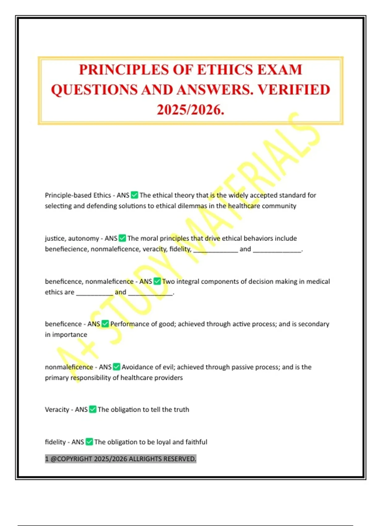 PRINCIPLES OF ETHICS EXAM