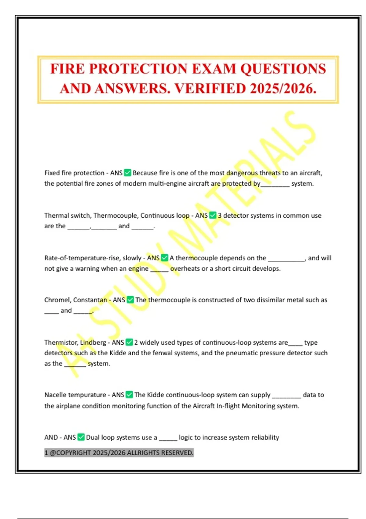 FIRE PROTECTION EXAM QUESTIONS AND ANSWERS. VERIFIED 2025/2026.