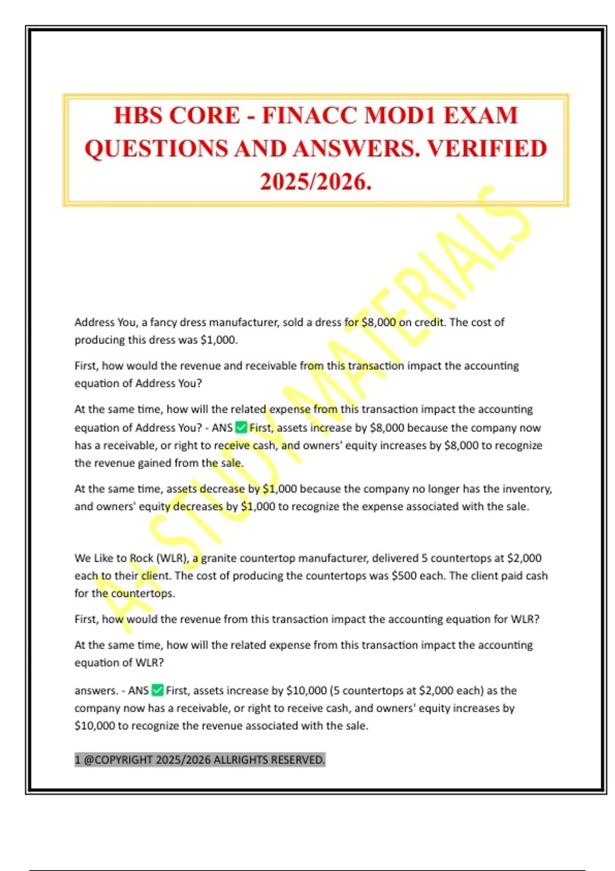 HBS CORE - FINACC MOD1 EXAM QUESTIONS AND ANSWERS. VERIFIED 2025/2026.