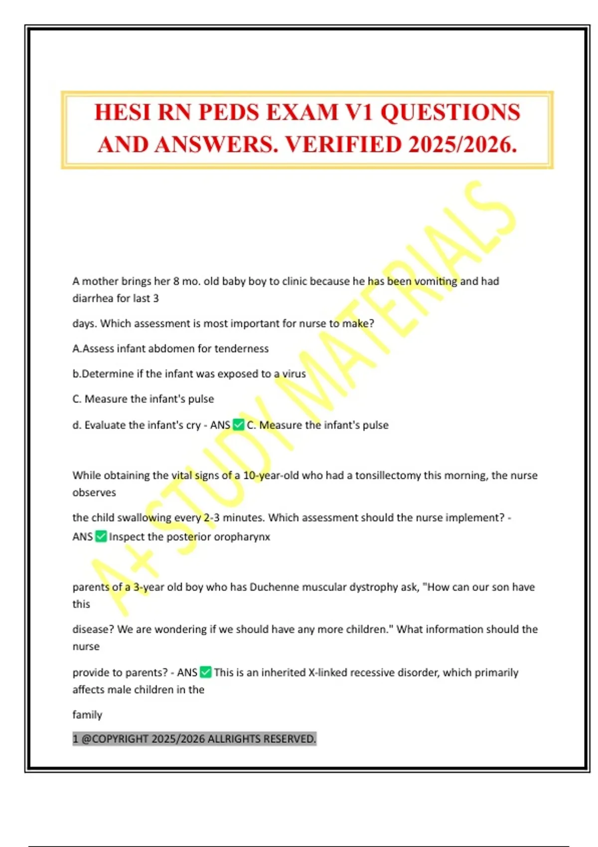 HESI RN PEDS EXAM V1 QUESTIONS