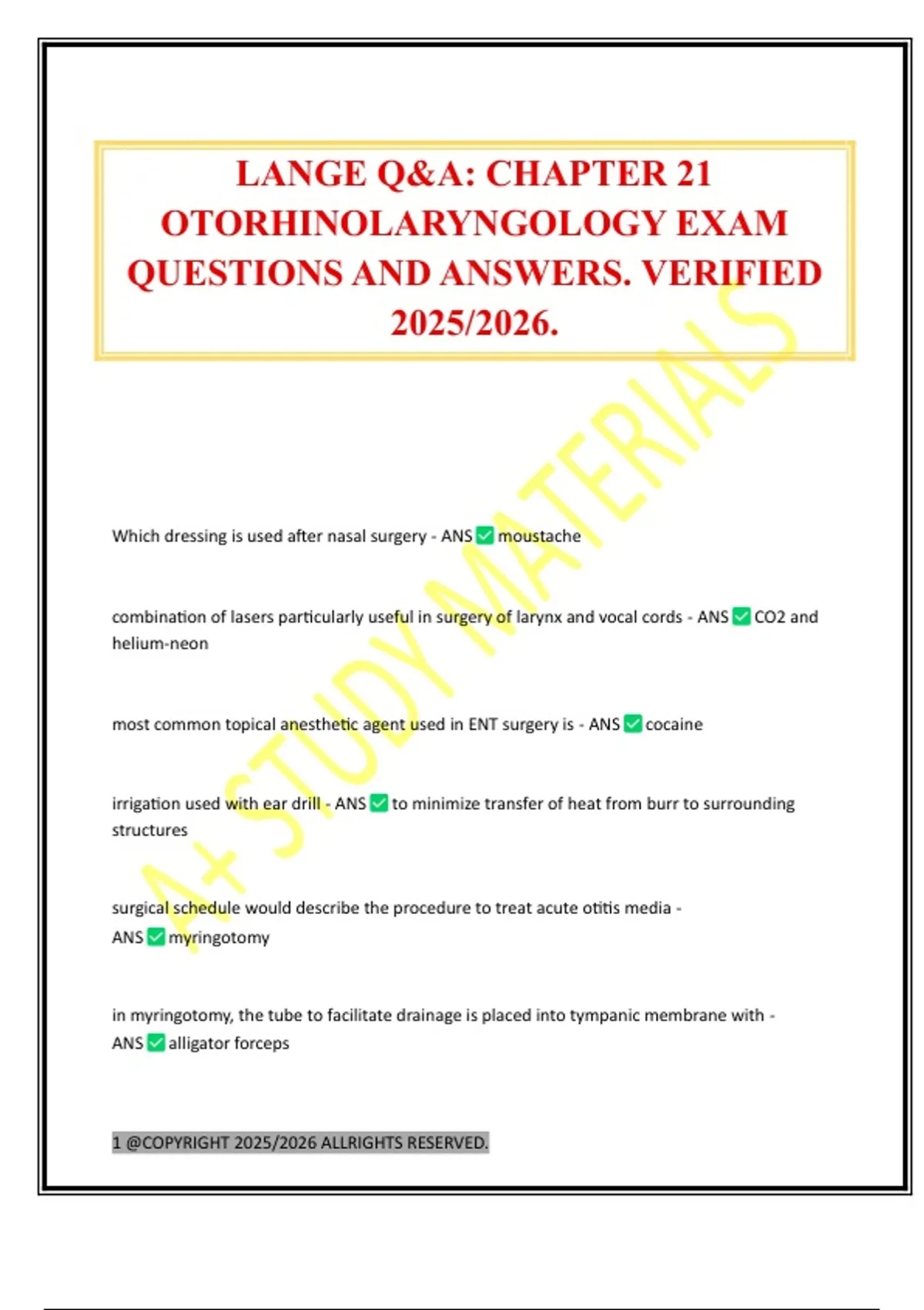 OTORHINOLARYNGOLOGY EXAM