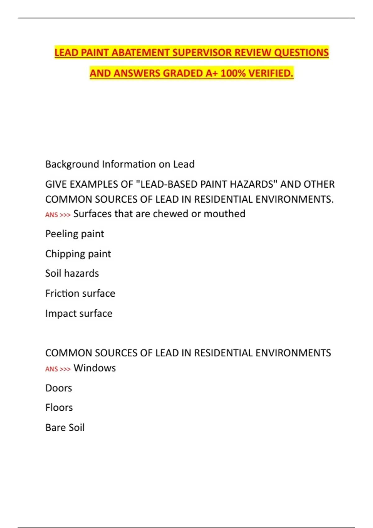REQUIREMENTS FOR LEAD-ABATEMENT WORKER TRAINING ANS