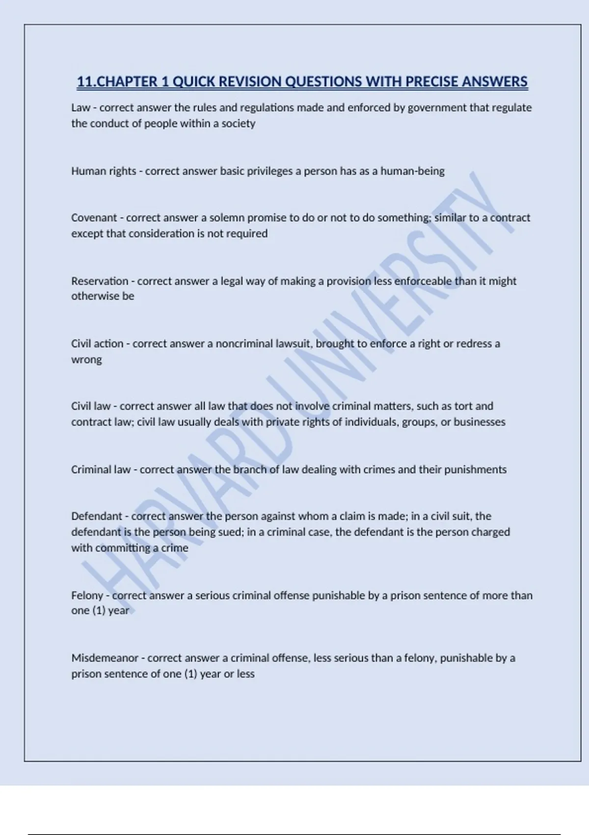 Criminal law - correct answer the branch of law dealing with crimes and their punishments