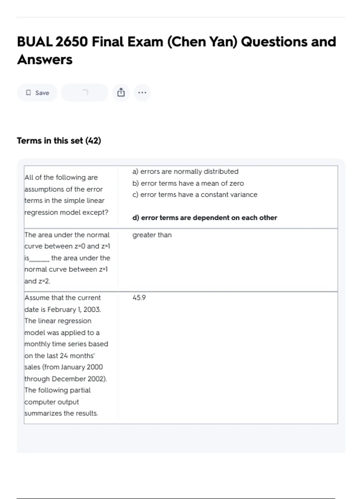 BUAL 2650 Final Exam (Chen Yan) Questions and