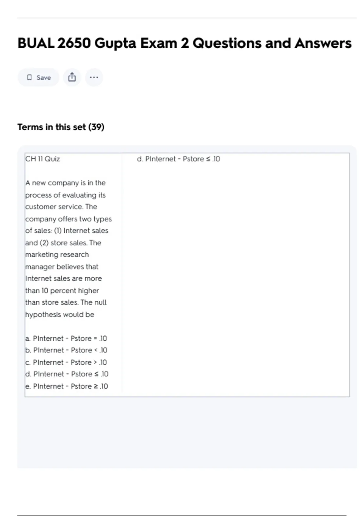 CH 11 Quiz d. PInternet − Pstore ≤ .10