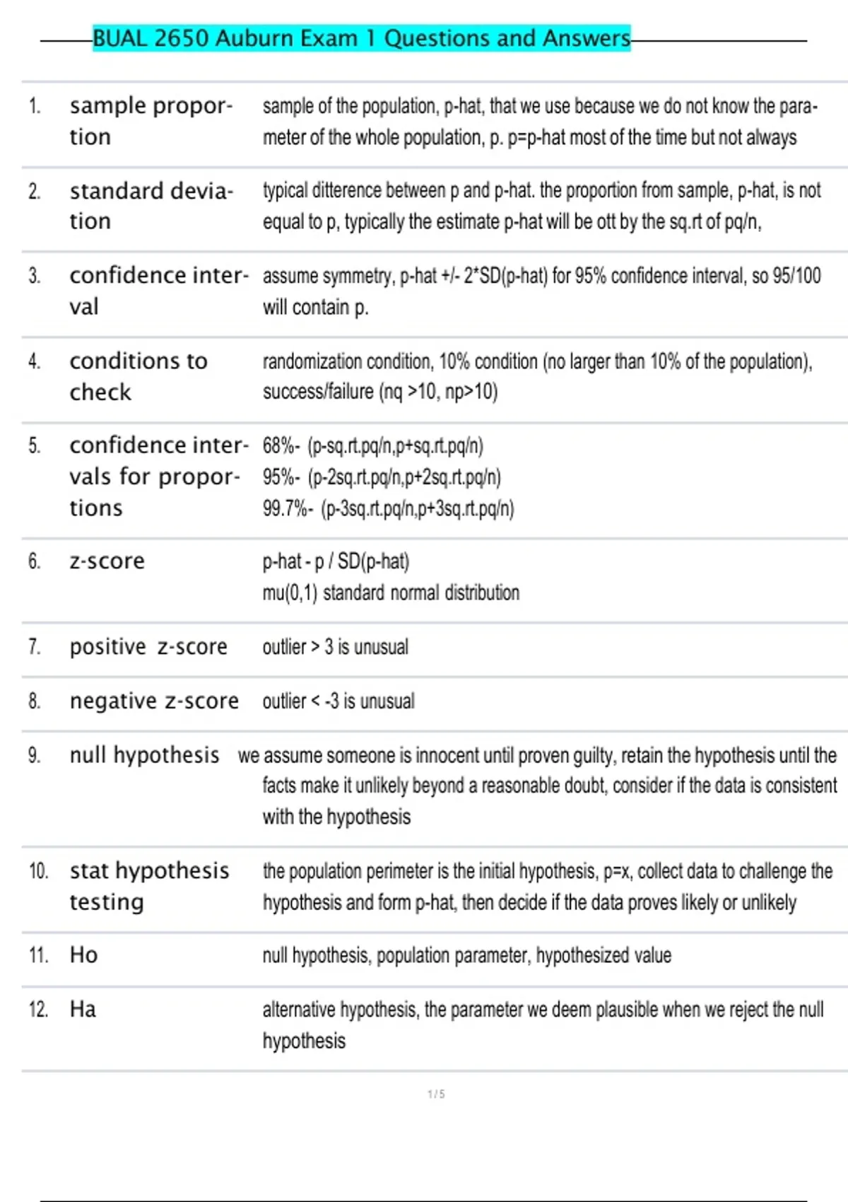 , BUAL 2650 Auburn Exam 1 Questions and Answers