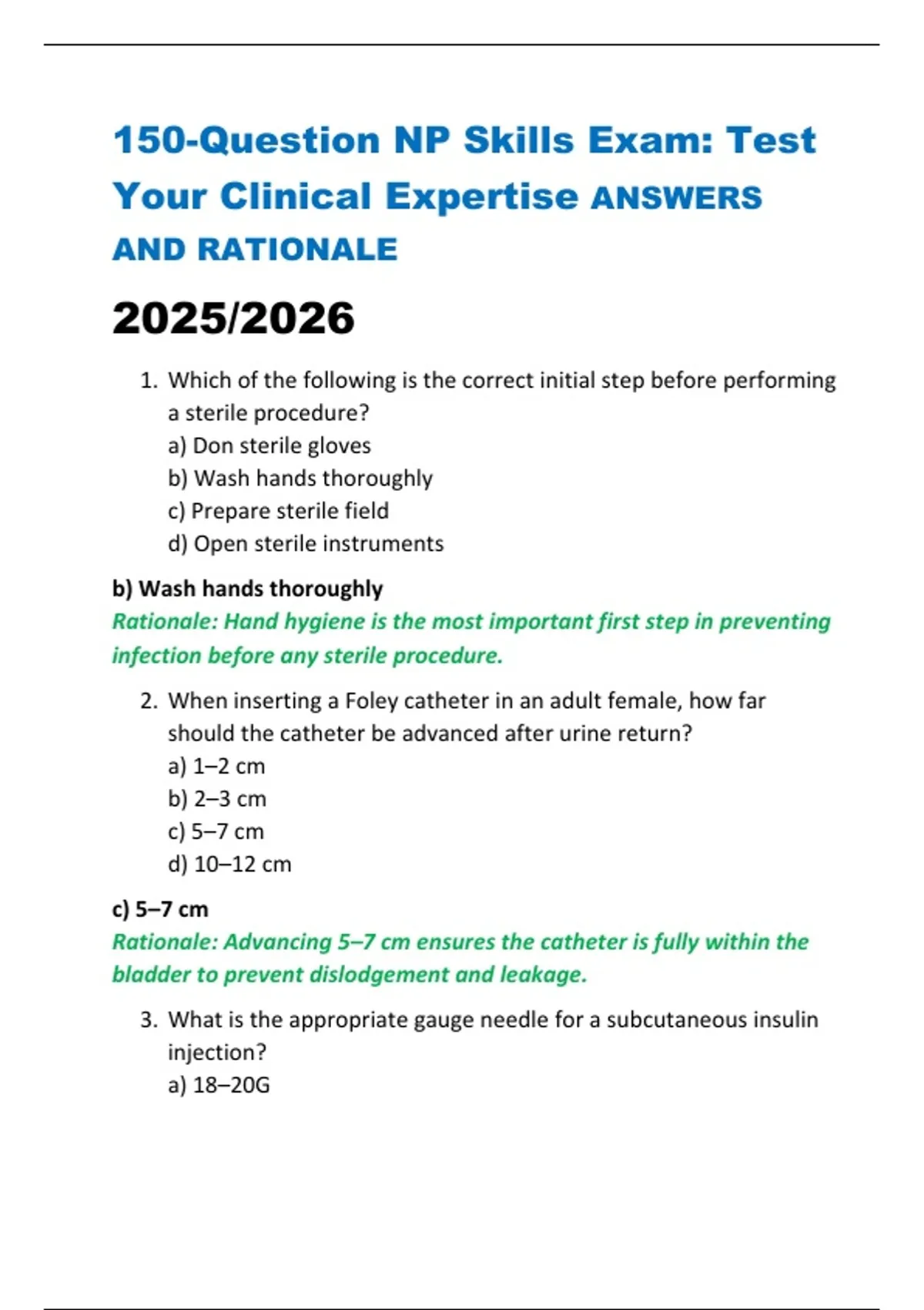150-Question NP Skills Exam: Test Your Clinical Expertise ANSWERS AND RATIONALE